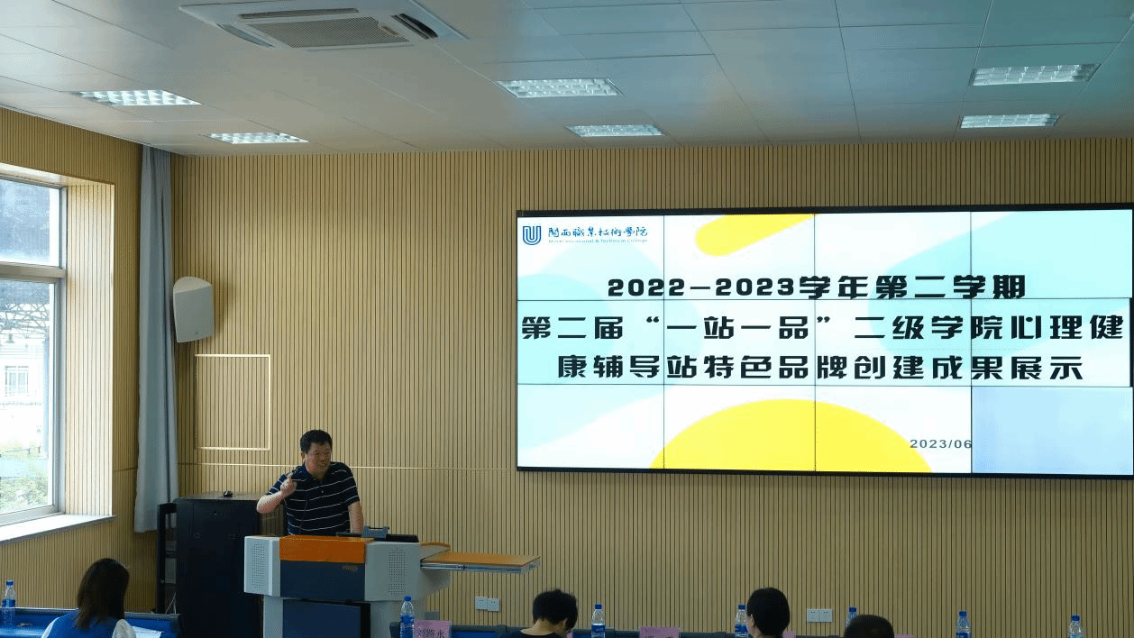 为积极推进“予生最好学校”建设,夯实MG冰球心理育人基础,充分发挥二级心理健康辅导站在大学生心理健康教育工作中的重要作用,于6月26日上午在望云楼阶梯教室一举办了第二届“一站一品”二级心理健康辅导站特色品牌展示评比活动。刘路永副校长、学生工作处负责人、龙岩学院心理中心罗灵娜主任、章颖教授、钟华华副研究员、各二级院副书记及辅导员参加了此次活动。