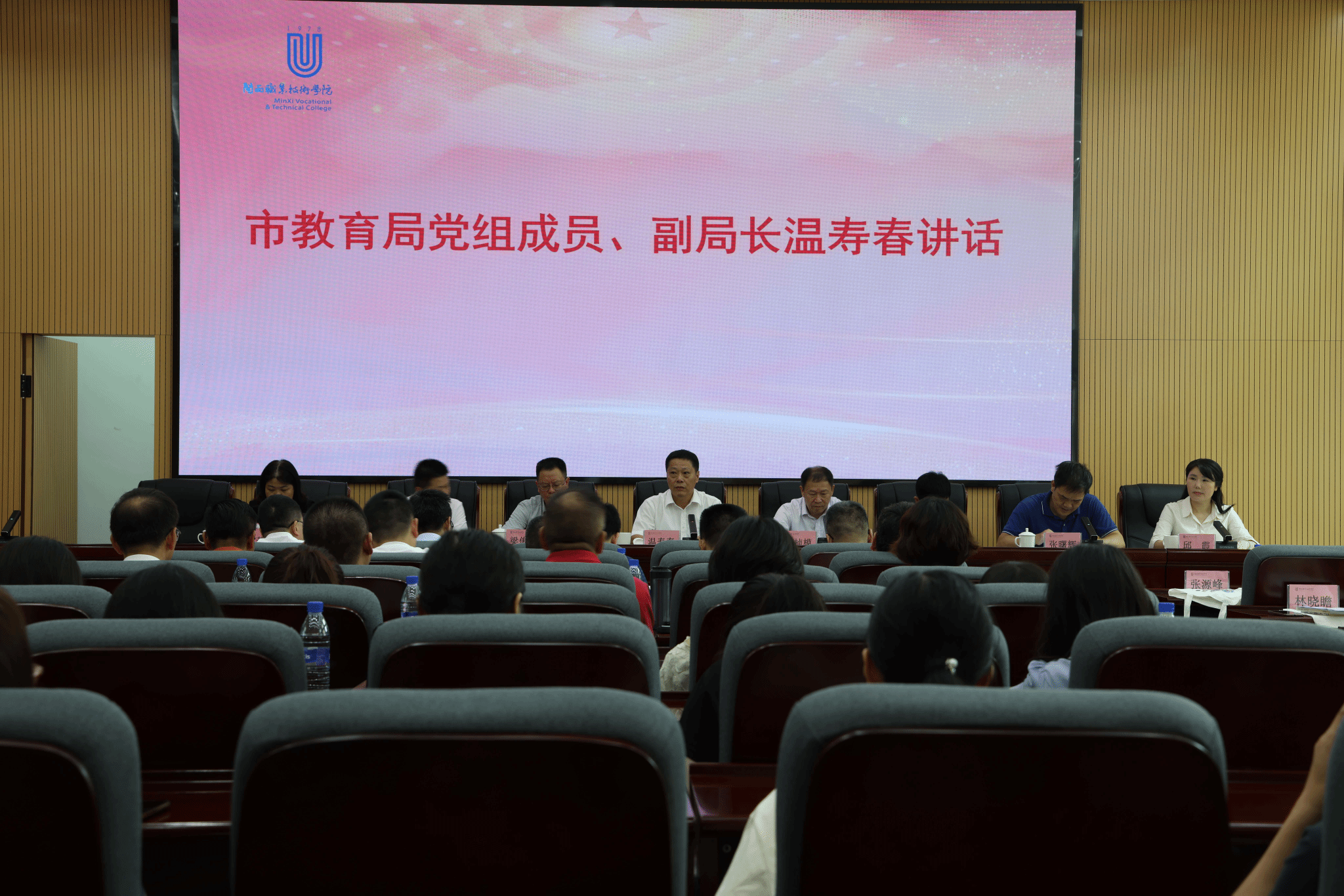 龙岩市教育局党组成员、副局长温寿春,龙岩市人社局党组成员、副局长、三级调研员卢桢模、龙岩市文化和旅游局人教科科长廖文钟、龙岩市人社局专家工作和职业能力建设科科长吴红芳、龙岩市职业技术教育与指导中心主任张曙辉、龙岩市旅行社同业公会会长、龙岩康辉国际旅行社总经理邱霞以及MG冰球校长梁俊平、党委副书记李贞鑫、教务处、对外交流合作处负责人、文化与旅游学院教师代表约100人参加了大会。