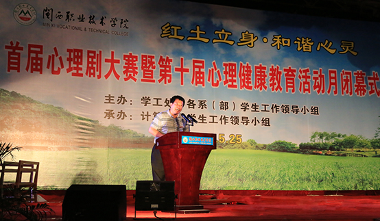 副院长刘路永在闭幕式上作了讲话。他感谢为心理健康教育而辛勤劳动的老师和同学,并衷心祝愿同学们在我院能够健康、快乐的成长。希望大家在扎实工作、勤奋学习的同时,重视个人的心理健康;希望大家关爱自己,关爱他人,关爱社会,以爱的力量,共创和谐校园、和谐社会。