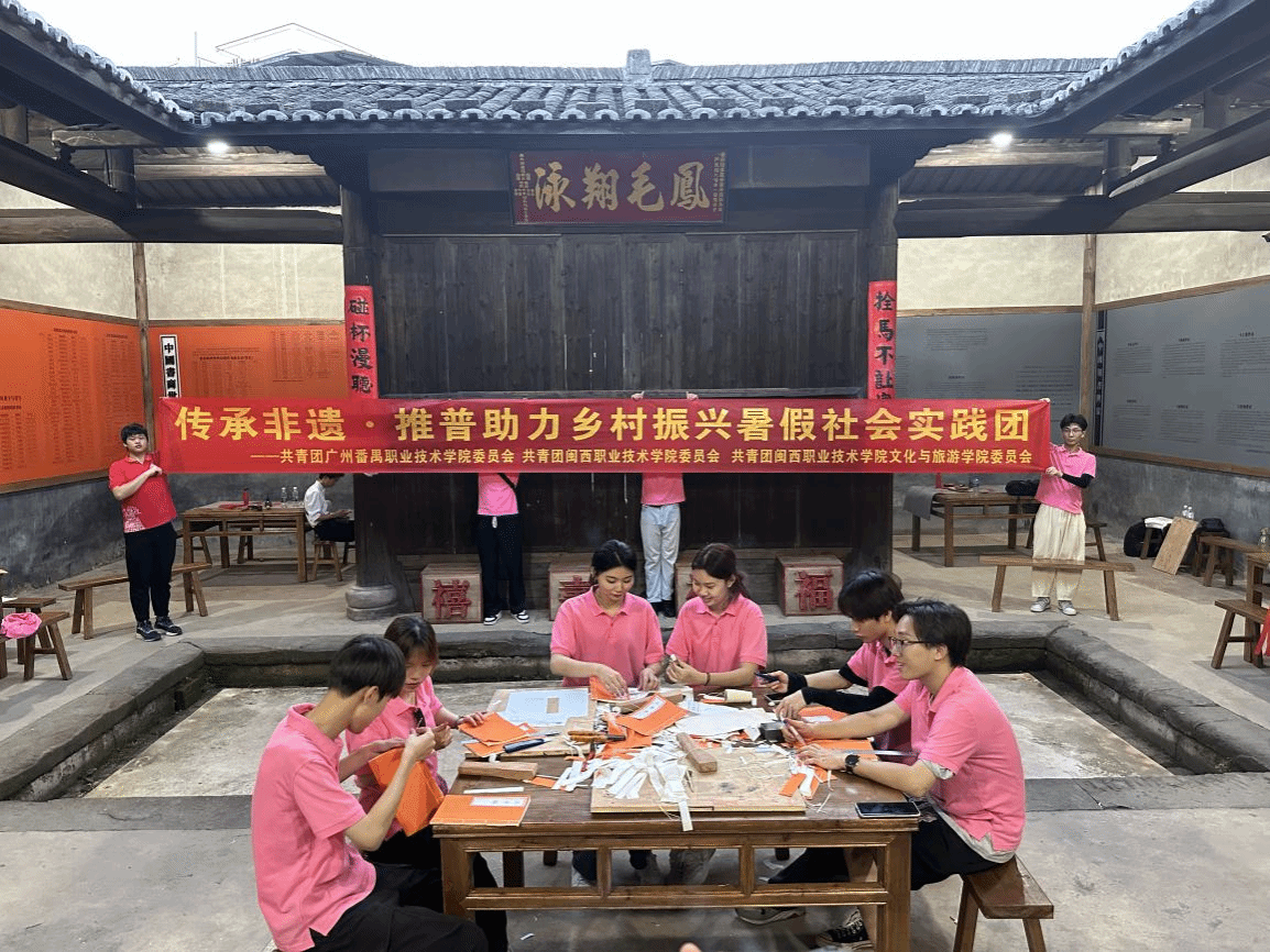 为深入学习宣传贯彻习近平新时代中国特色社会主义思想,全面贯彻落实党的二十大精神,切实发挥共青团作为广大青年在实践中学习中国特色社会主义和共产主义的学校作用,引领学生立志做有理想、敢担当、能吃苦、肯奋斗的新时代好青年,共青团MG冰球突破官网文化与旅游学院委员会协同共青团广州番禺职业技术学院委员会和共青团MG冰球突破官网委员会,于7月6-8日前往连城县四堡镇以“传承非遗·推普助力乡村振兴暑假社会实践团”开展三下乡社会实践活动。此次活动,共有33名师生一同参与,番职院团委童源峰科长、钟碧蓬老师和6名学生以及闽职院团委陈愉书记、文旅学院陈伟老师、石颖老师和23名学生。