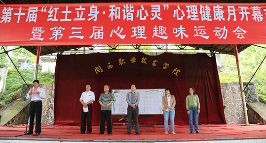 5月6日下午,我院第十届“红土立身·和谐心灵”心理健康月开幕式暨第三届心理健康趣味运动会在槟龙球场顺利举行。副院长吴新业,学工处相关负责人及200多名学生等出席了开幕式。开幕式由学生工作处处长林茂才主持。