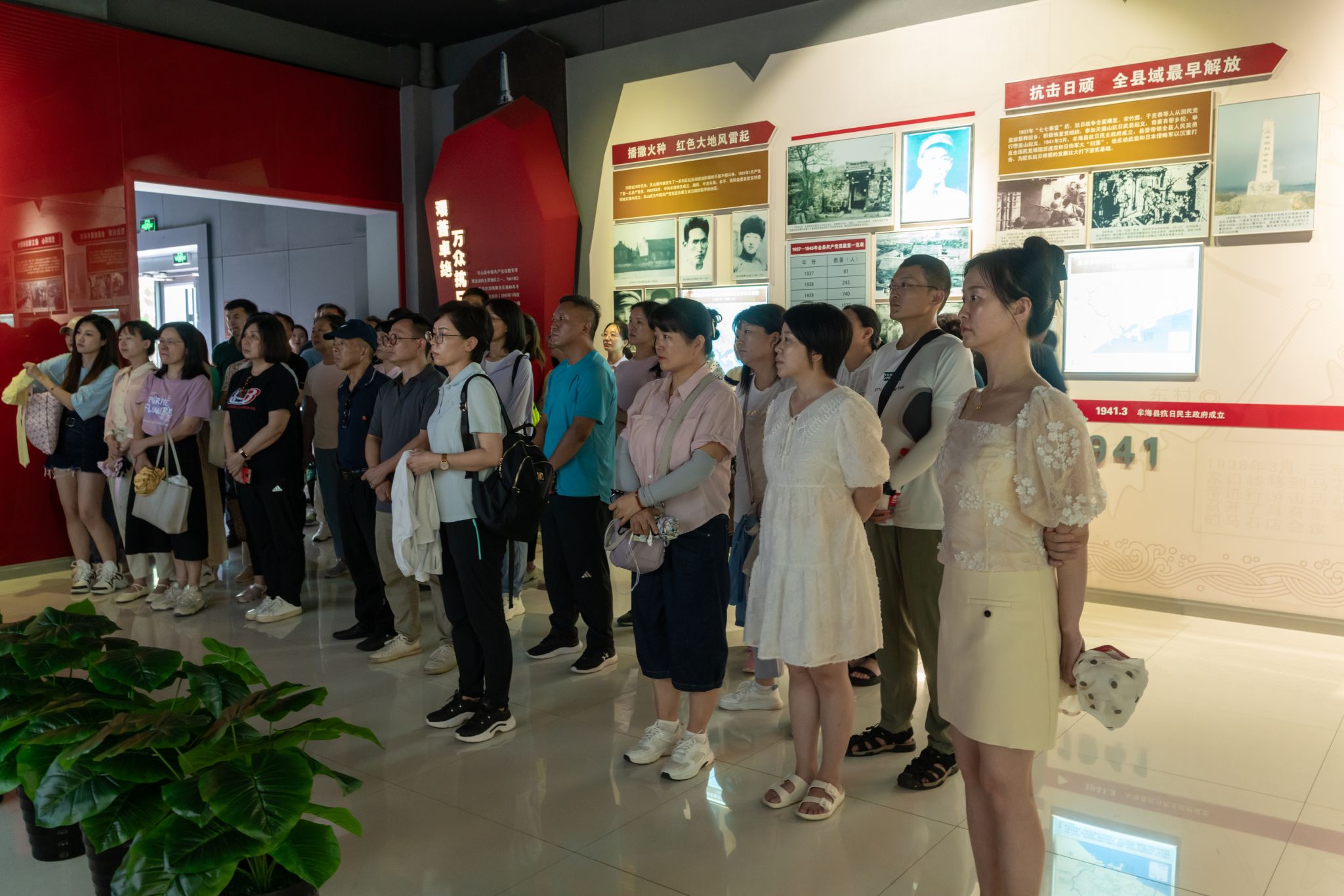 在位于乳山市崖子镇田家村的乳山胶东育儿所,教师们一起回顾了抗日战争期间胶东乳娘为党哺育革命战士后代的故事,在敌人不断扫荡、驻地经常迁徙等极端艰苦条件下,300多名乳娘和保育员甚至牺牲自己的孩子也要保护革命战士的后代,1223名革命后代无一伤亡。通过这段历史,教师们真切感受到革命战争年代“党群水乳交融、军民生死与共”的鱼水深情。