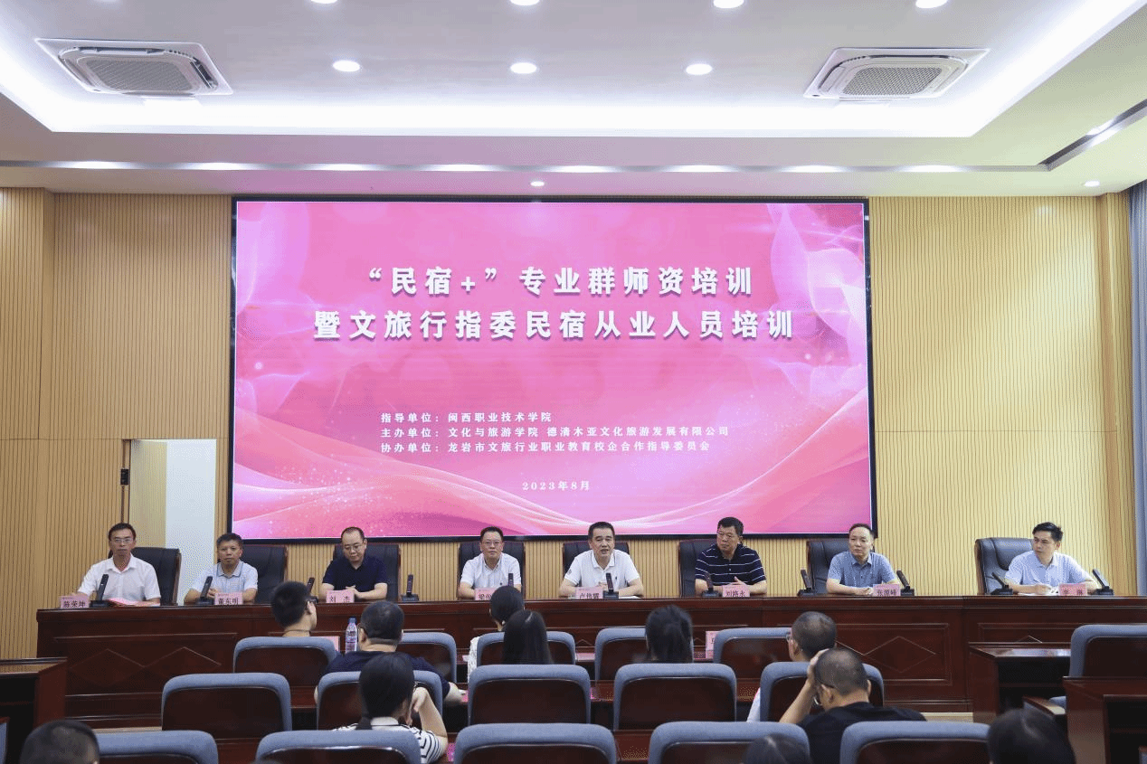 为推进“民宿+”专业群建设,推动产教融合发展,加快三教改革落地,提升教职工和龙岩文旅行指委民宿从业人员行业认知,促进龙岩民宿行业高质量发展,2023年8月22-24日,MG冰球突破官网文化与旅游学院和德清木亚文化旅游发展有限公司联合主办了“2023年民宿+专业群师资培训暨文旅行指委民宿从业人员培训班”。校党委书记卢伟耀,校长梁俊平,副校长刘路永,以及相关部门领导出席了开班仪式。卢伟耀书记致辞,对德清木亚文化旅游发展有限公司刘杰等专家一行的到来表示热烈欢迎,并围绕民宿产业的发展对此次培训作出展望。
