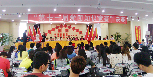 4月26日下午,我院“第十一届党团知识竞赛”总决赛在学术报告厅举行。团委负责人、学工处负责人、纪检室相关负责人、机械工程系团委负责人、文传系团委负责人等出席,院系200多名学生参加。本次活动由院团委主办,机械工程系团委、院学生团委承办。