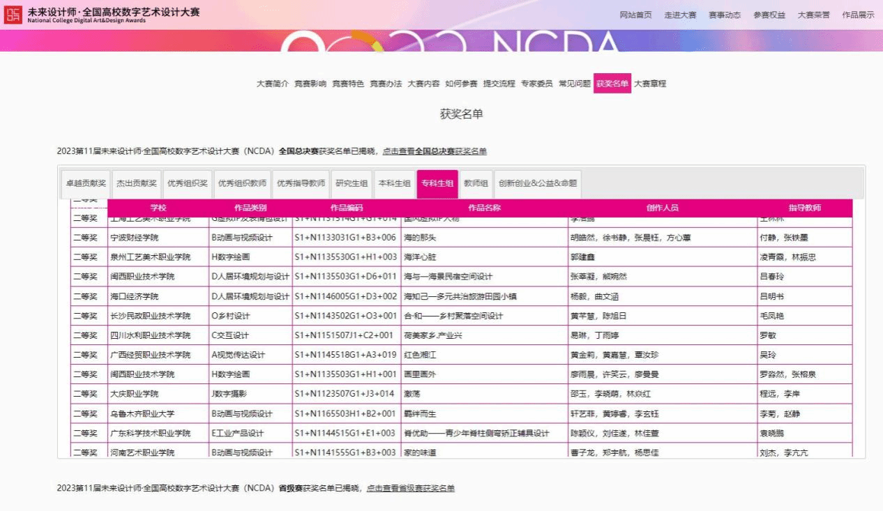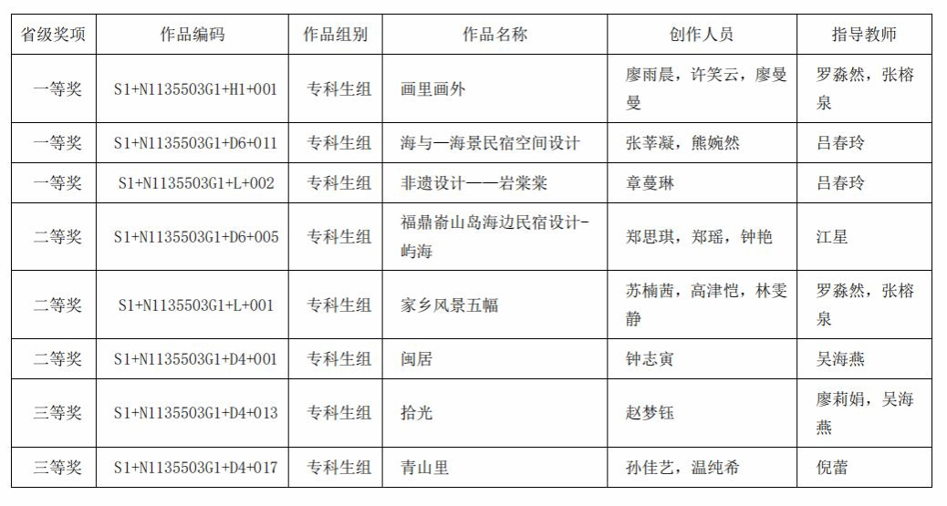 近日,MG冰球文化与旅游学院学生参加第11届未来设计师·全国高校数字艺术设计大赛(NCDA)”喜获佳绩,在省级赛中获一等奖3项、二等奖3项、三等奖2项。其中《画里画外》、《海与—海景民宿空间设计》在全国总决赛中分别获得二等奖。