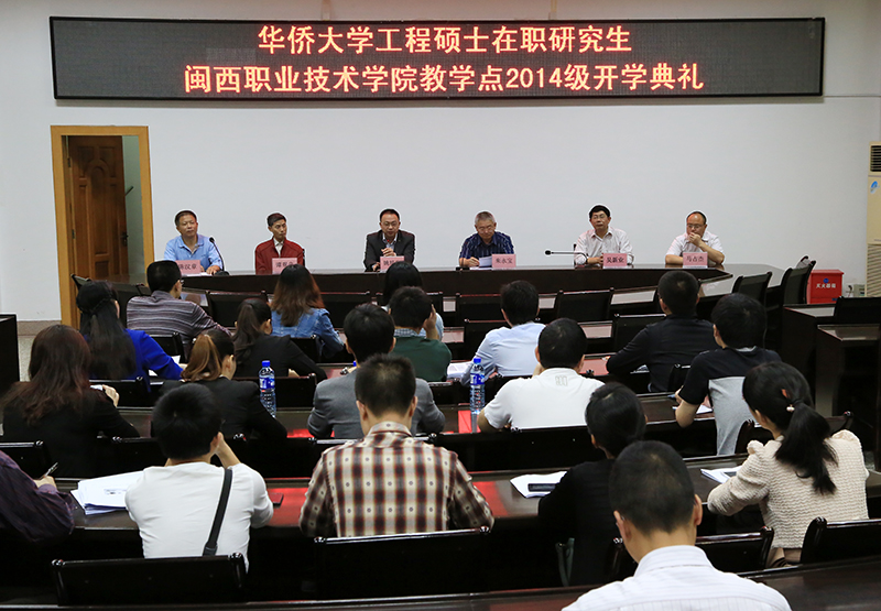 4月26日上午,MG冰球突破官网在办公楼二楼会议室举行MG冰球突破官网与华侨大学联合办学的2014级工程硕士在职研究生开学典礼。华侨大学工商管理学院党委书记姚培生,华侨大学工商管理学院信息管理系主任谭观音、教授马占杰,我院院长来永宝教授、副院长吴新业等出席开学典礼。来自龙岩市部分县(市、区)、市直机关、企事业单位的26名新生参加开学典礼。开学典礼由我院继续教育部负责人陈汉章主持。