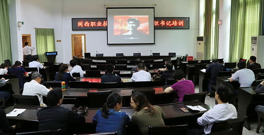 4月23日下午,我院在办公楼二楼会议室举行基层党组织书记培训,集中观看了《谷文昌》专题片。各总支书记、支部书记和院教育实践办成员等共近40人到场观看。