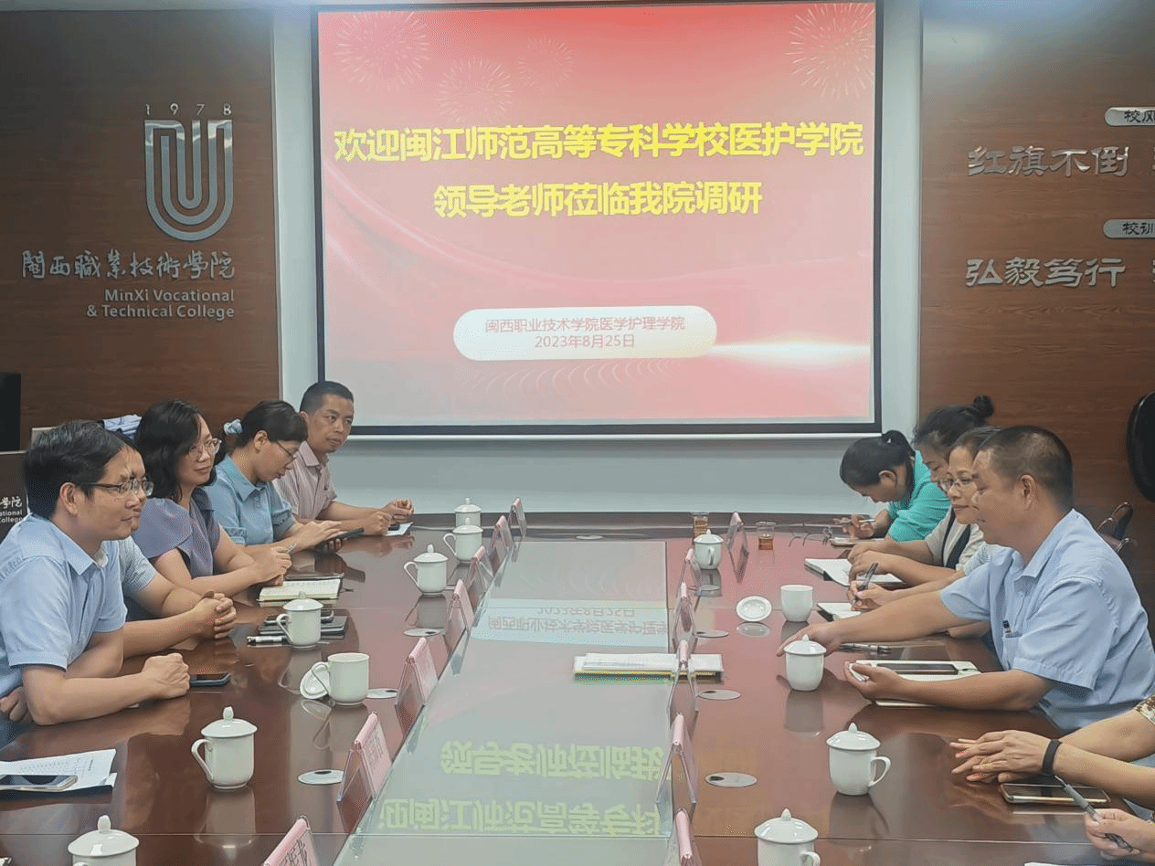 近日,闽江师范高等专科学校副校长刘翔炜携医护学院副院长吴茂龙、副书记陈锦香等11人来校调研交流。MG冰球医学护理学院党政领导及专业主任、教研室主任参加座谈交流并陪同调研。