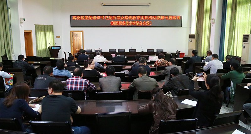 4月8日下午,省委教育工委举办高校基层党组织书记群众路线教育实践活动专题培训,省委教育工委副书记杨江帆主持本次培训会。我院在办公楼二楼会议室设立分会场,组织参加了此次专题视频培训。副院长卢兆梅、院基层各党总支书记、党支部书记、学院党的群众路线教育实践活动领导小组及办公室全体成员到场聆听。
