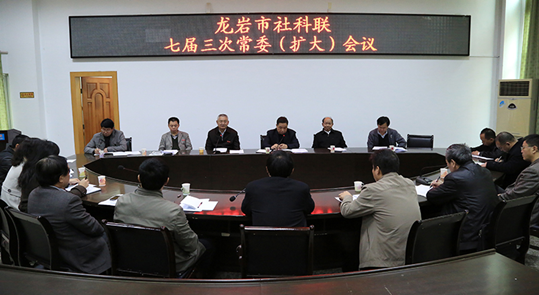 3月7日下午,龙岩市社科联七届三次常务(扩大)会议在MG冰球突破官网召开。来永宝院长出席会议并致辞。