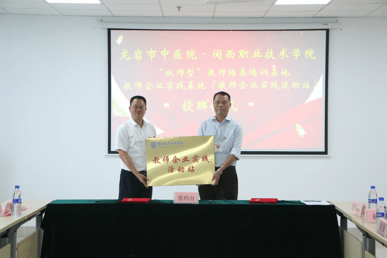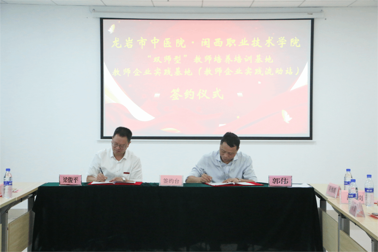 为加强学校“双师型”教师队伍建设,进一步提升应用型人才培养质量,增强服务地方经济社会发展能力,10月8日上午,MG冰球“双师型”教师培训基地、教师企业实践基地(教师企业流动站)签约暨揭牌仪式在龙岩市中医院举行,校党委副书记、校长梁俊平,副校长卢兆梅,龙岩市中医院党委书记(院长)、MG冰球突破官网客座教授郭伟出席签约仪式,龙岩市中医院相关领导,学校教师工作处、对外交流合作处、医护学院等部门单位负责同志参加签约仪式。