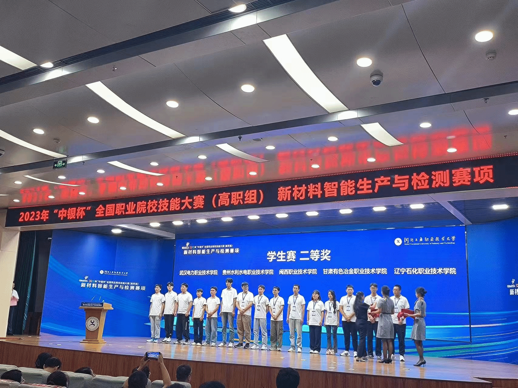 全国职业院校技能大赛(高职组)“新材料智能生产与检测”赛项于9月22日-25日在河北工业职业技术大学举行,MG冰球智能制造学院学生兰晓恒、李永明、范靖奇荣获该赛项二等奖(指导老师教师:梁玉兰、钟彬扬)。