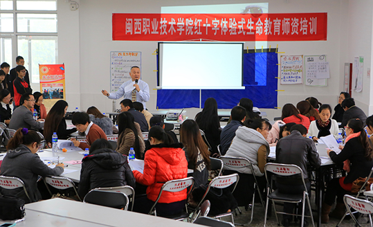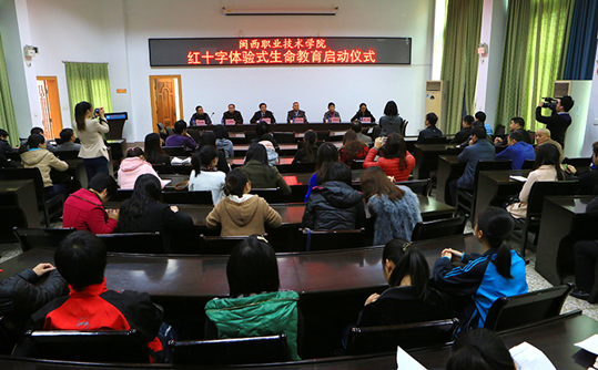 12月10日,MG冰球突破官网红十字会体验式生命教育启动仪式在行政楼二楼会议举行。福建省红十字会体验式生命教育师资训练组组长、国家注册高级人力资源管理师、国家注册高级企业培训师来永旭,龙岩市红十字会常务副会长张龙生、秘书长刘淑荣,学院副院长卢兆梅,团委、学工处全体工作人员,各系(部)党总支负责人、辅导员及学生代表70余人参加了启动仪式。启动仪式由团委书记、院红十字会副会长李瑛主持。