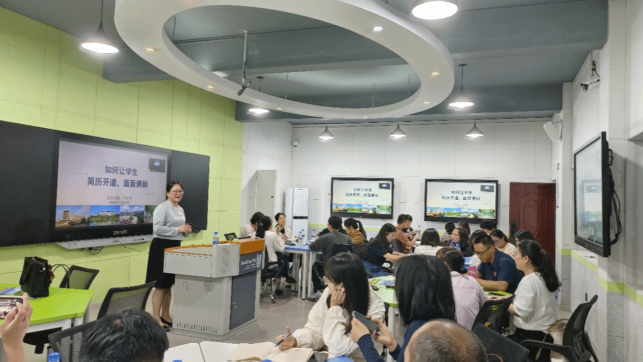 蔡文婷总监从数字经济时代背景、产业行业企业用人需求出发,结合自身从事多年企业HR经历和职业生涯教育经验,饱含情怀地讲述了如何透过行为表象走进学生的内心世界,赋能学生探索自我,树立自信,激发内生动力,规划好大学生活。卢小珍副教授围绕“如何让学生简历开道,面面俱到”、“大学生职业规划大赛文件解析及备赛技巧”“大学生的职业规划与就业选择存在的问题”等多个主题,就如何构建大学生职业生涯规划和就业指导工作体系进行了经验传授和分享交流。