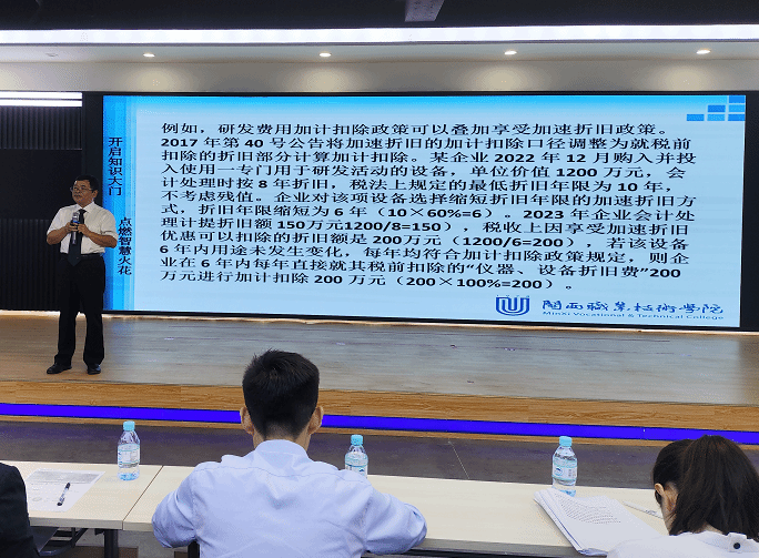 MG冰球科研处处长卢德湖教授从研发费用加计扣除相关概念及范围界定、研发项目管理、研发费用加计扣除政策的主要内容、研发费用加计扣除核算要求、研发费用加计扣除申报和后续管理等五个方面对现有研发费用加计扣除政策进行详细解读,得到参会企业领导和财务人员的高度好评。