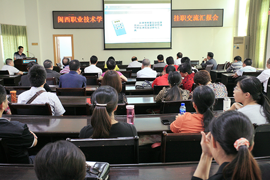 10月22日下午,学院教师暑期国内培训、企业挂职交流汇报会在行政楼二楼会议室召开。院长助理李伟闽,各系(部)正、副主任,专业教研室主任和教师代表近80人参加。汇报会由教务处处长吕建林主持。罗有才、黄素叶、张榕泉、侯恩光、吴淑娟、张岚等六位教师分别作交流发言。