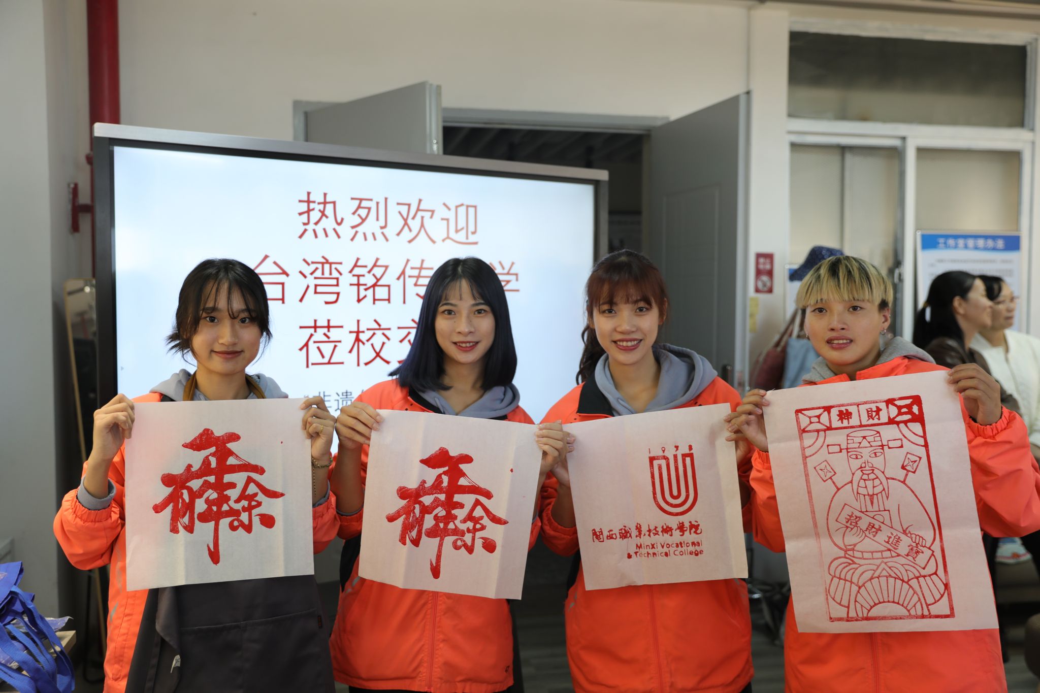 在比赛之前,台湾铭传大学师生参观了学校“非遗传承人”工作室。台湾师生对“非遗传承人”工作室富有闽西特色的剪纸作品、戳戳绣手工作品、具有校园文化特色的漳平农民画等作品表示赞许和惊叹,并饶有兴致的参与了国家级非遗项目“雕版印刷技艺”,一幅幅凝结着两岸学子共同心愿和心血的“闽大”校标、“年年有余”等作品应时而生。参观完非遗工作室,MG冰球文化与旅游学院旅游管理专业的学生为台湾铭传大学师生“带你游闽大”,两岸师生边走边聊,共同探讨各自不同而又亲切的校园生活、学业压力等 。