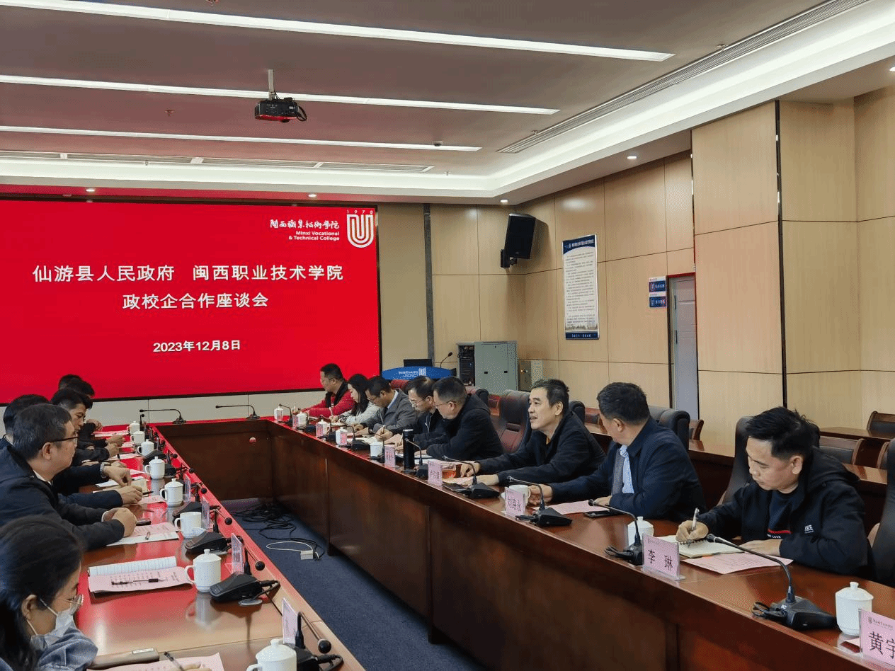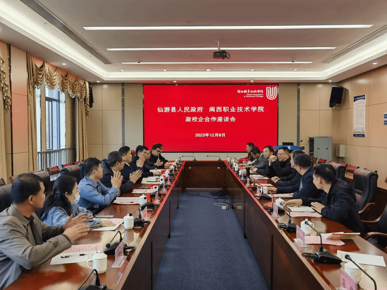 12月8日,仙游县副县长林宁一行10人到MG冰球开展政校企合作座谈会。MG冰球卢伟耀书记、梁俊平校长、刘路永副校长及文化与旅游学院班子成员参加了会议。