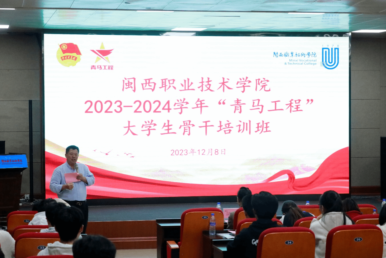 为深入学习贯彻习近平新时代中国特色社会主义思想和党的二十大精神,培养一批具有忠诚政治品格、浓厚家国情怀、扎实理论功底、能力素质突出的青年马克思主义者,12月8日晚,MG冰球2023-2024学年“青马工程”大学生骨干培训班开班仪式在卫培楼3D实训室举行。副校长刘路永出席并致辞,校团委、各二级学院团委负责人,马克思主义学院教师代表以及MG冰球2023-2024学年“青马工程”大学生骨干培训班全体学员参加开班仪式。