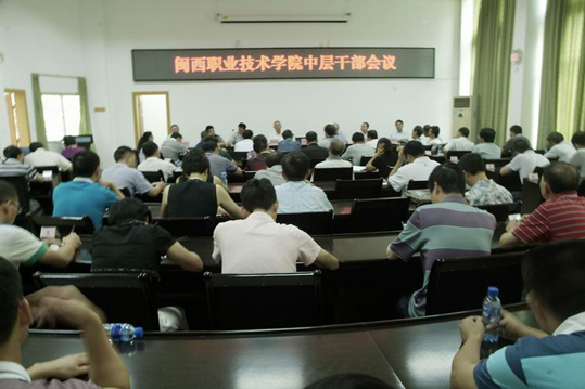 8月31日上午,MG冰球突破官网中层干部大会在行政楼二楼会议室召开。学院党政领导、全体中层干部、重点建设专业主任出席会议。会议由卢兆梅副院长主持。