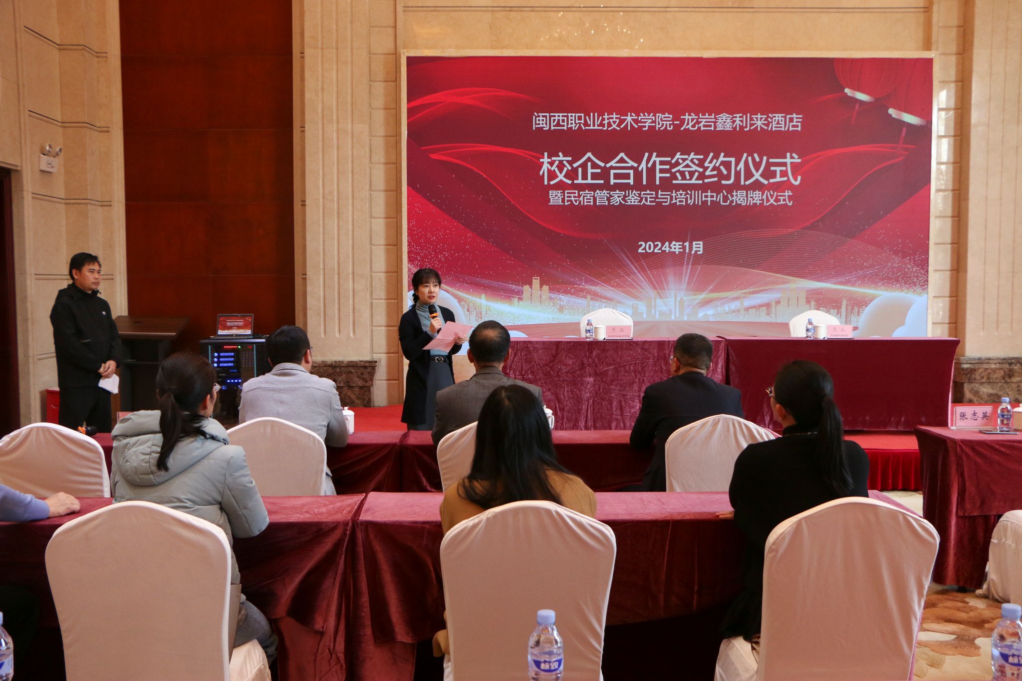 为加快落实MG冰球突破官网“2024科创融汇建设年”行动计划,推动“文旅民宿”专业群建设,提升龙岩民宿行业发展水平,拓展龙岩文旅产业发展内涵,2024年1月12日,MG冰球突破官网“民宿管家鉴定与培训中心”在鑫利来酒店挂牌成立。MG冰球突破官网校长梁俊平、鑫叶集团副总经理张志英出席,文旅学院领导班子及相关专业教师、鑫利来酒店领导班子参加了仪式。