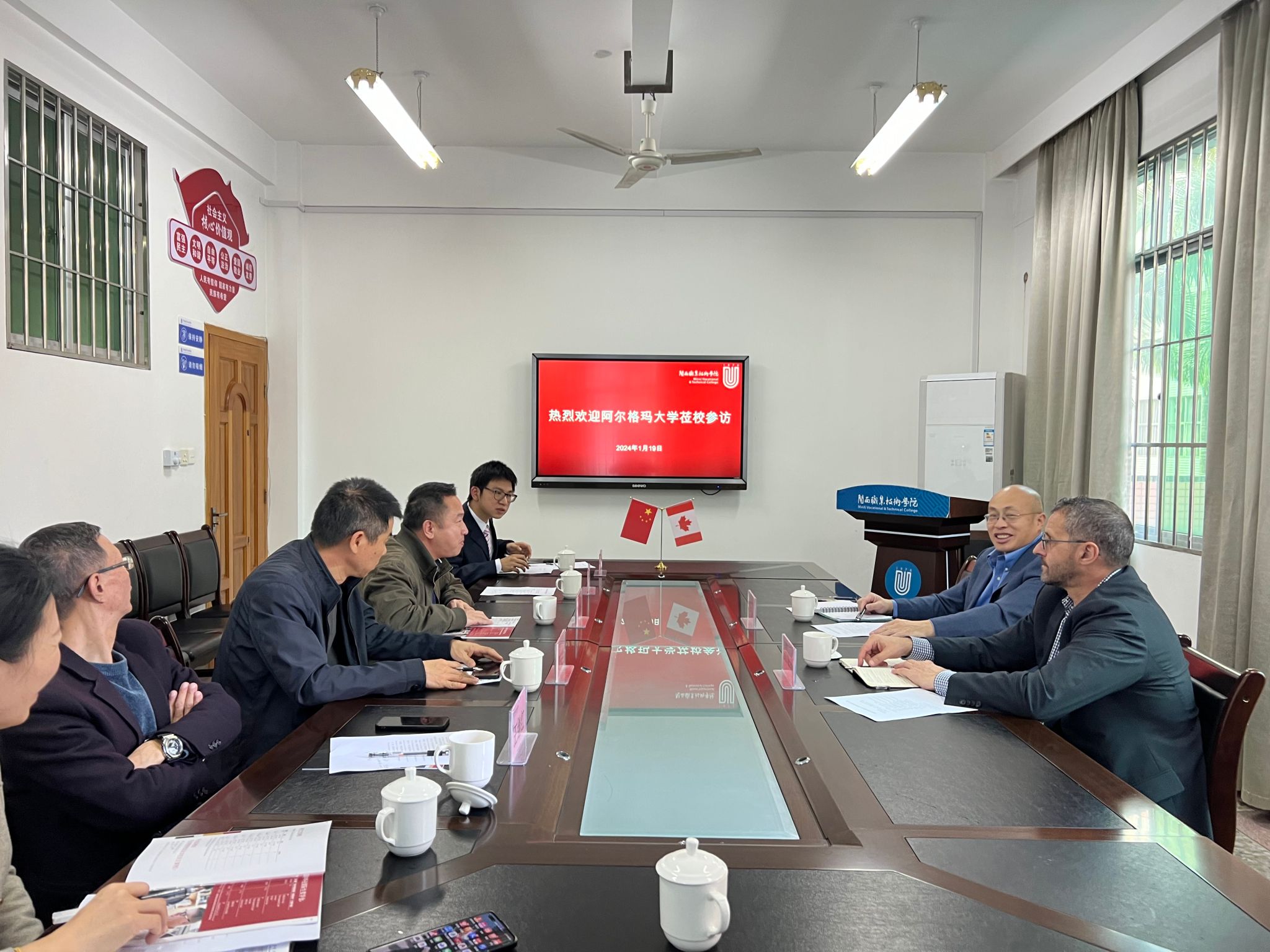 1月19日,加拿大阿尔格玛大学战略和合作部主任大卫·马拉斯科、数学与计算机学院徐绍春教授莅临MG冰球参观访问。对外交流合作处、发展规划与质量控制处、继续教育学院、信息工程学院相关负责人参加了座谈会。
