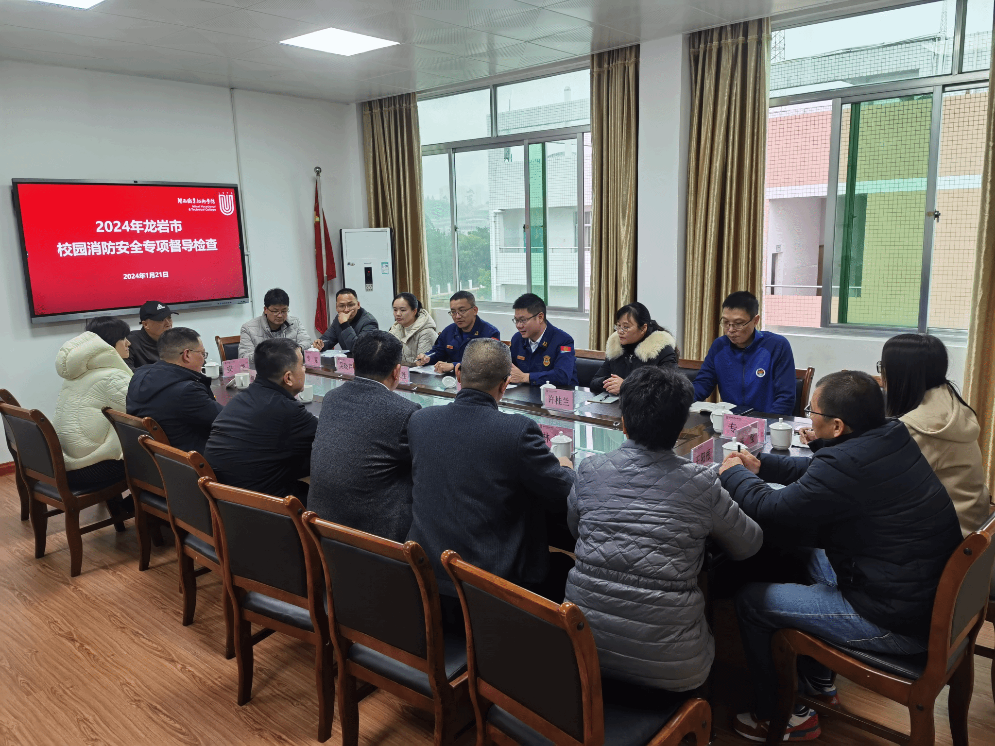 1月22日上午,龙岩市平安建设领导小组校园及周边治安综合治理专项组莅校督导检查工作。督导检查组长、市消防救援支队副支队长孙高穹一行8人围绕岁末年初学校安全和消防安全专项开展督导检查。校党委书记卢伟耀,校长梁俊平,副校长刘路永及安全保卫处等相关部门负责同志作了相关工作汇报、陪同检查。