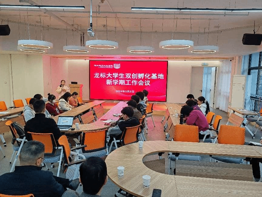 3月5日下午,创新创业学院在万源楼三楼召开了龙标大学生双创孵化基地新学期工作会议,入驻孵化基地各项目负责人、指导老师、抖音各工作室负责人、企业导师共计30多人参加了此次会议。