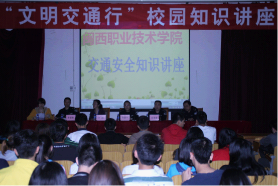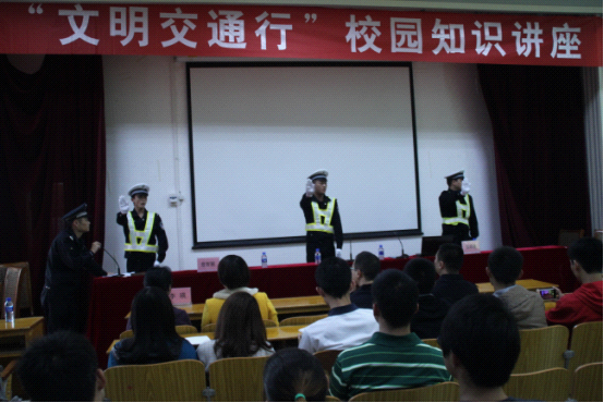 2013年4月23日下午,龙岩市公安局、新罗区公安分局交巡警大队与“玫瑰青春”义工服务中心在学院行政楼三楼开展“文明交通行”交通安全知识讲座。市公安局团委书记陈蔚华,新罗区公安分局团委书记肖秉康,学院团委负责人和近百青年志愿者听取讲座。