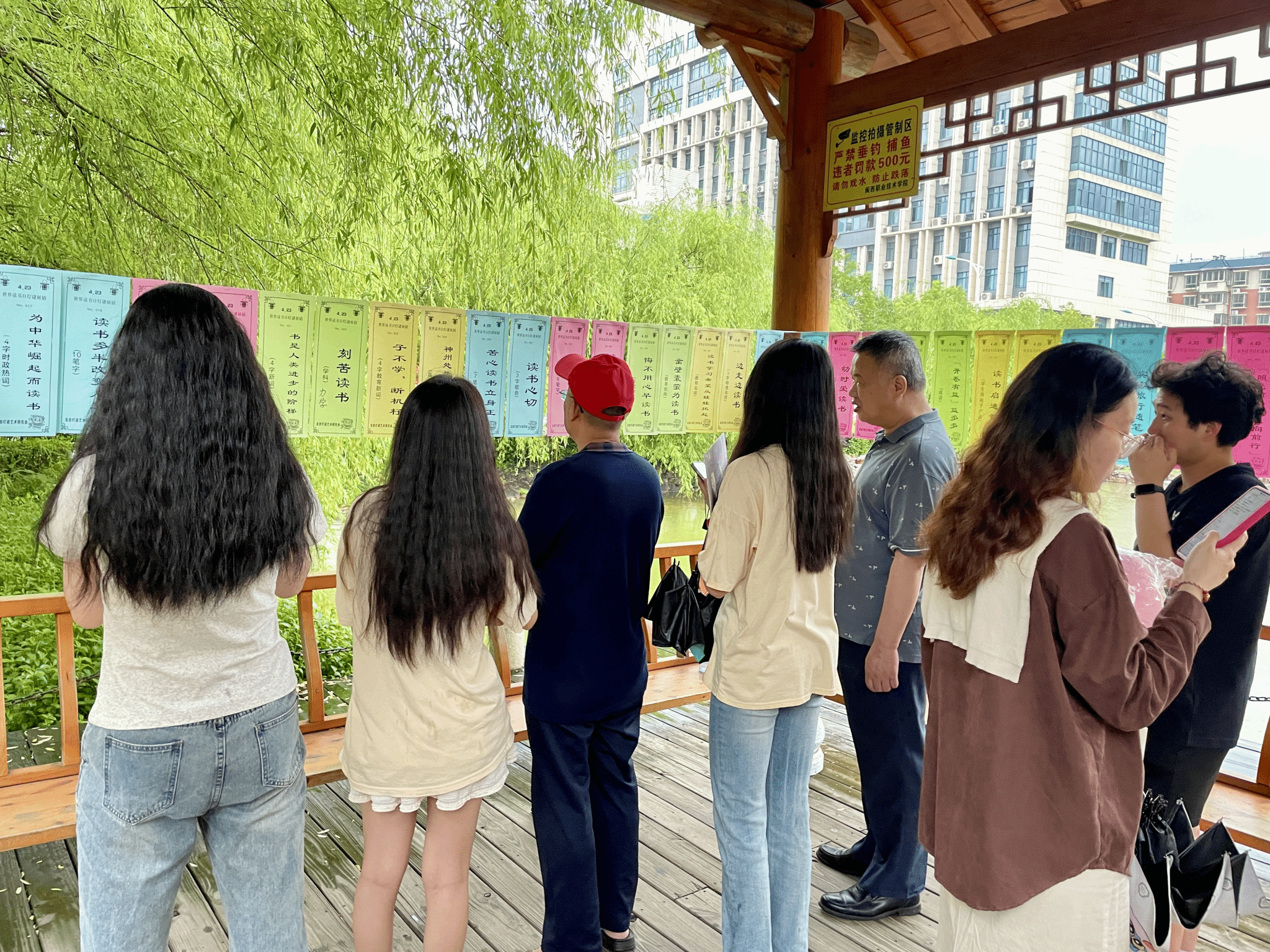 仪式现场布置迎宾展览《古田会议是党和军队建设史上的里程碑》、数字阅读新体验区、灯谜竞猜区等,深受师生的喜爱,吸引广大读者共享浓浓书香。