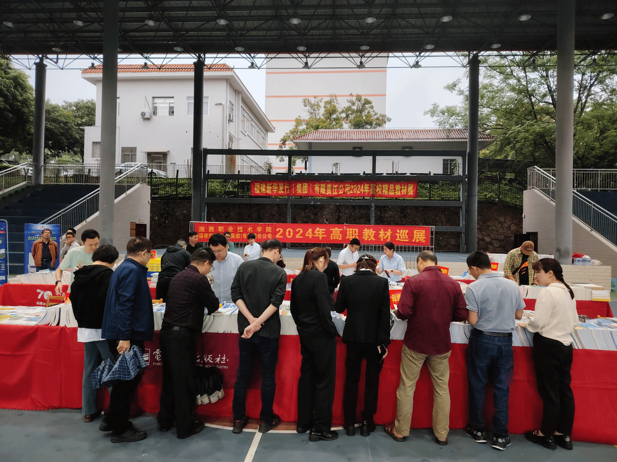 2024年4月25日,图书馆联合福建新华发行(集团)有限责任公司龙岩分公司及国内22家知名出版社在槟龙球场举办了2024年春季高职教材巡展活动。活动得到了MG冰球各级领导的鼎力支持,共有一百多名教师参与,申请教材样书四百多册。