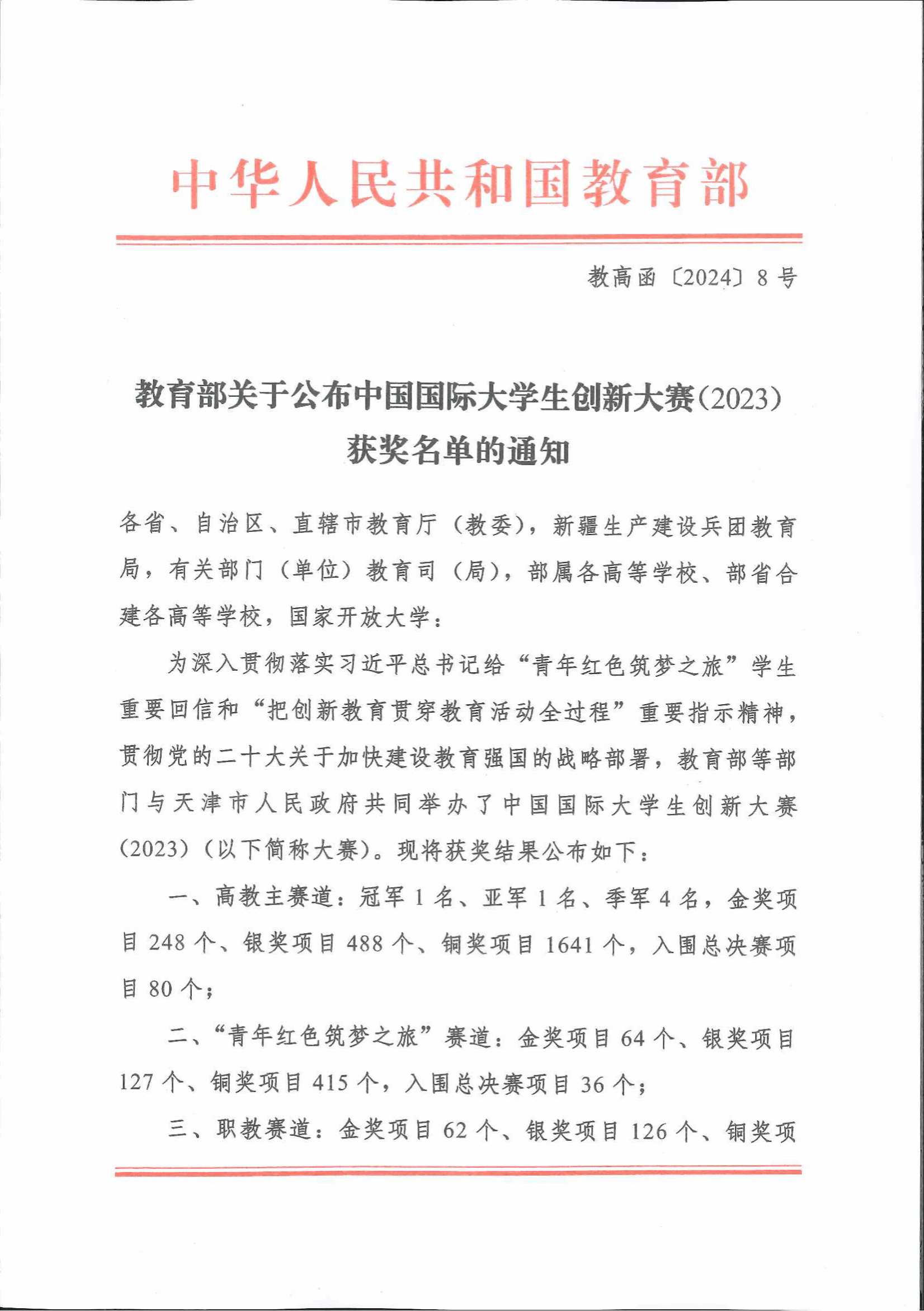 中国国际大学生创新大赛(前身为“互联网+”大学生创新创业大赛,至2023年连续举办了九届)设有高教主赛道、“青年红色筑梦之旅”赛道、职教赛道、产业命题赛道等四个赛道。