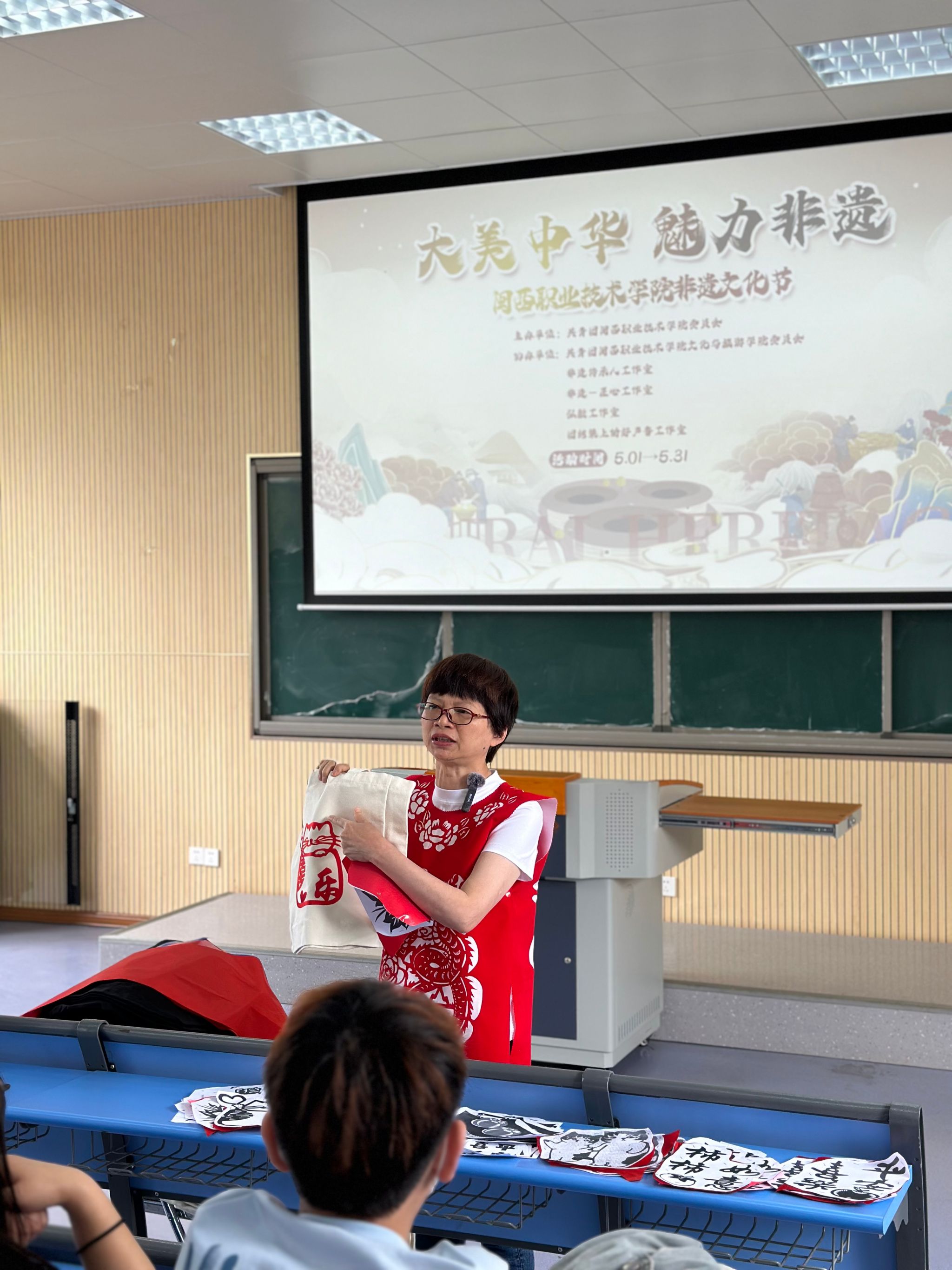 为弘扬中国优秀传统文化,激发同学们了解龙岩本土文化的热情,由共青团MG冰球突破官网委员会、文化与旅游学院共同主办,“非遗传承人”工作室承办的“包罗万象,剪彩生活”非遗手工体验活动于2024年5月12日下午,在望云楼阶梯教室举行。此次活动邀请市级非遗项目“龙岩剪纸”代表性传承人林红缨作为主讲人,为师生们开启了一扇通往非遗文化传承与现代美育实践的大门。