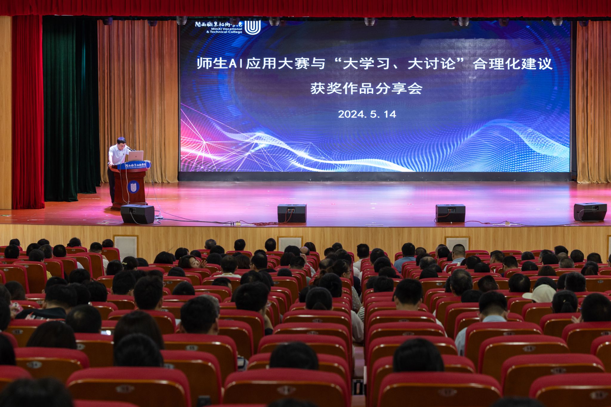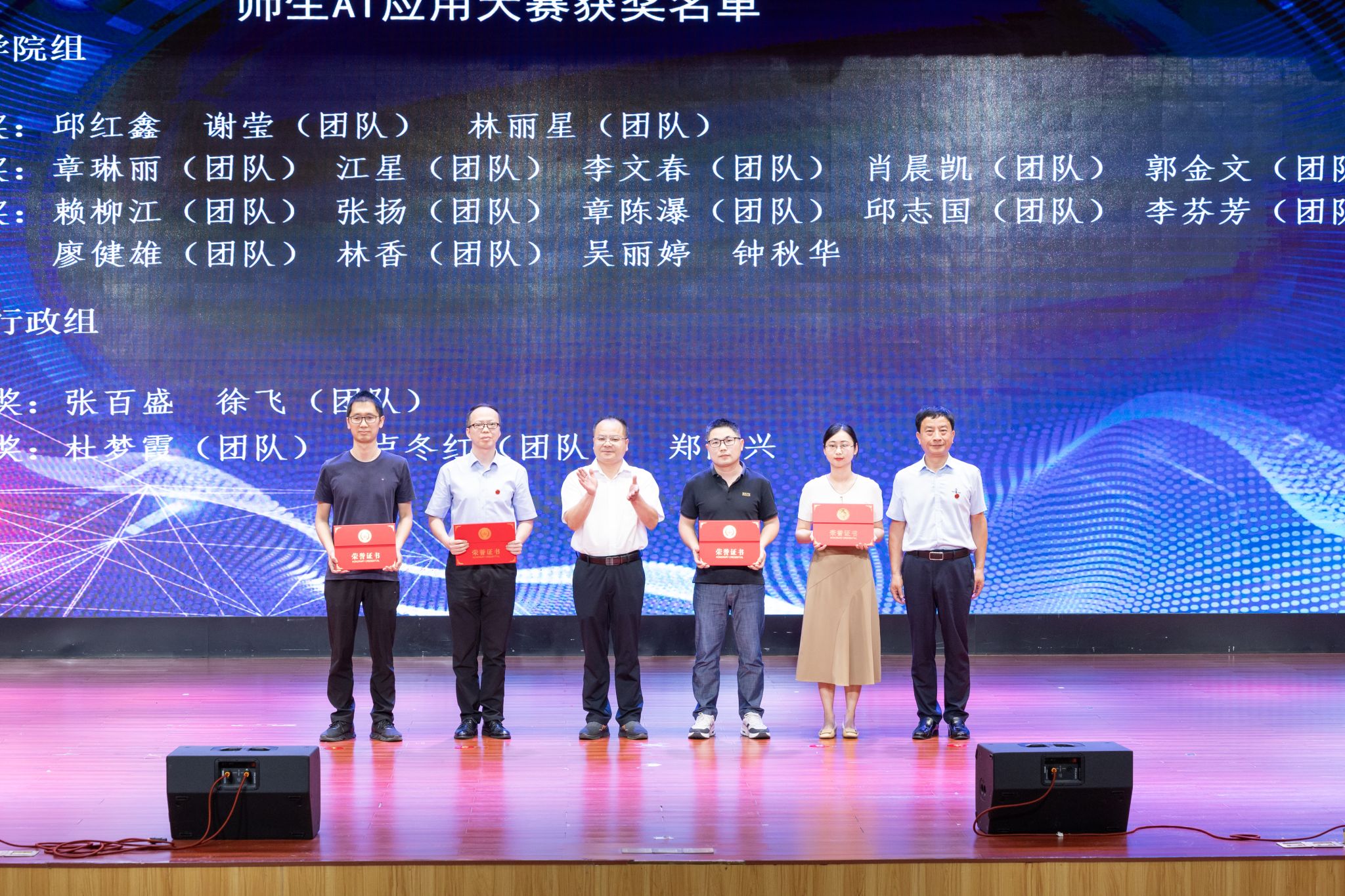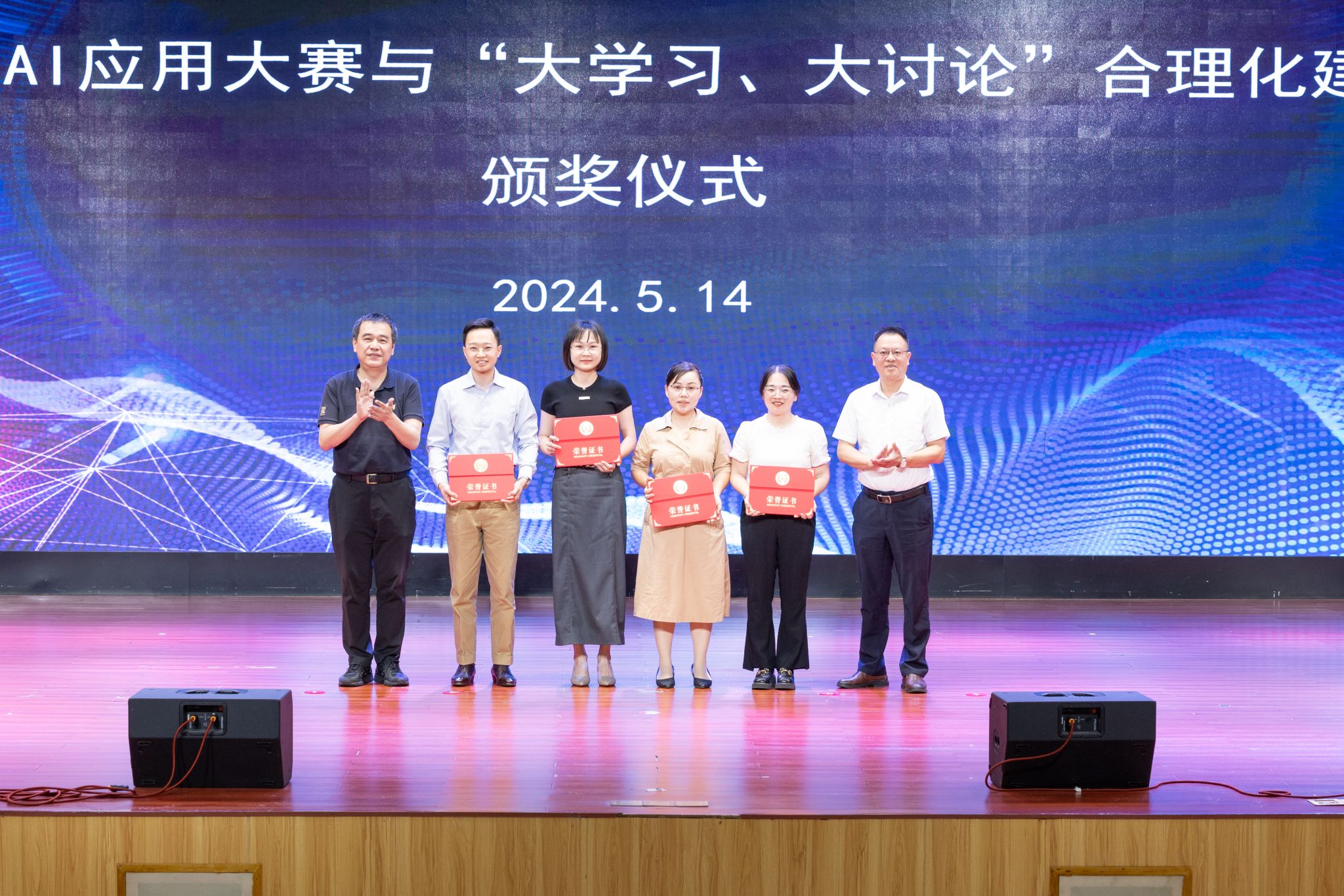 分享会上,还举行了师生AI应用大赛与“大学习、大讨论”合理化建议获奖作品颁奖仪式,学校领导为获奖教师代表颁发了荣誉证书。