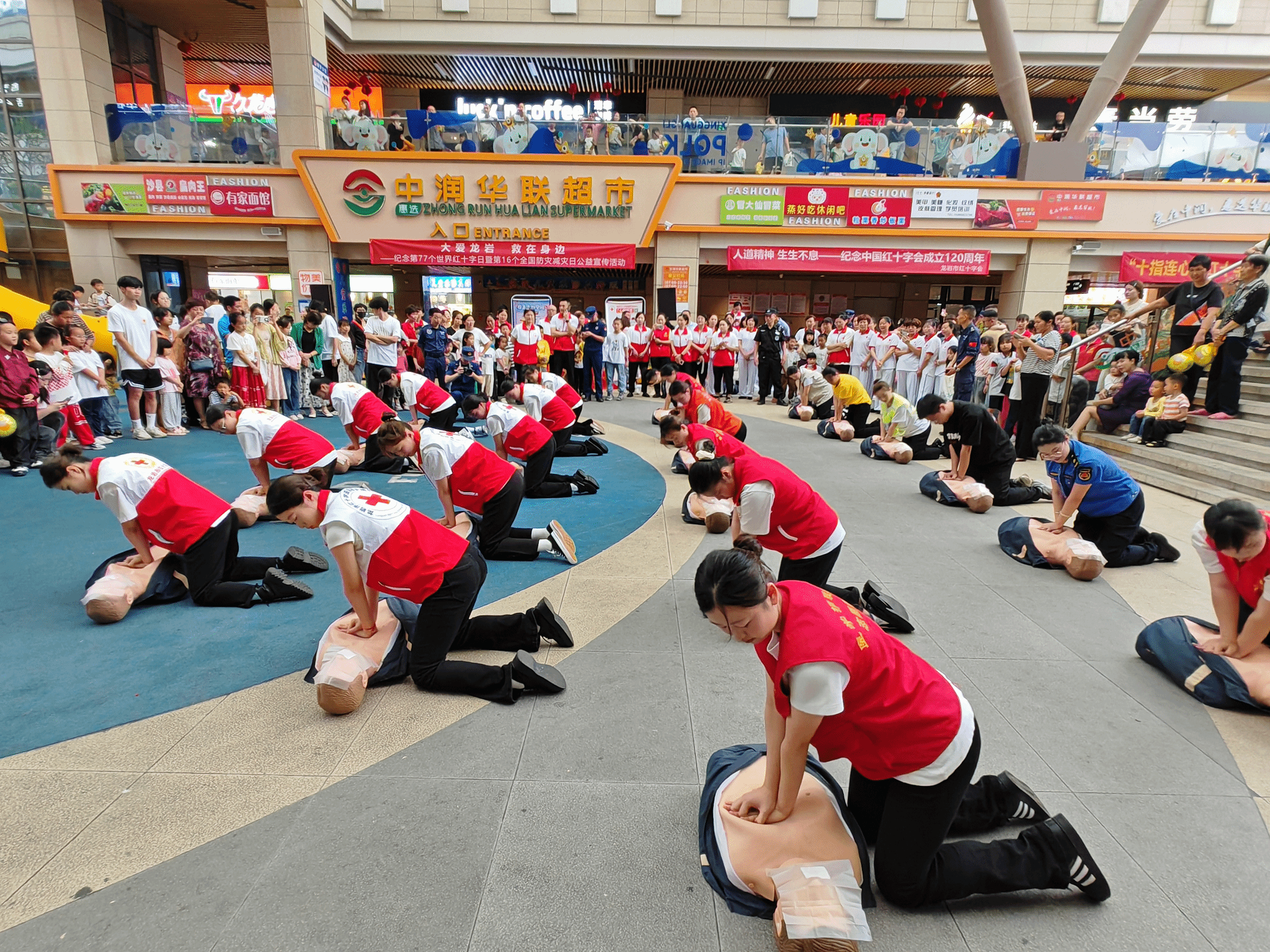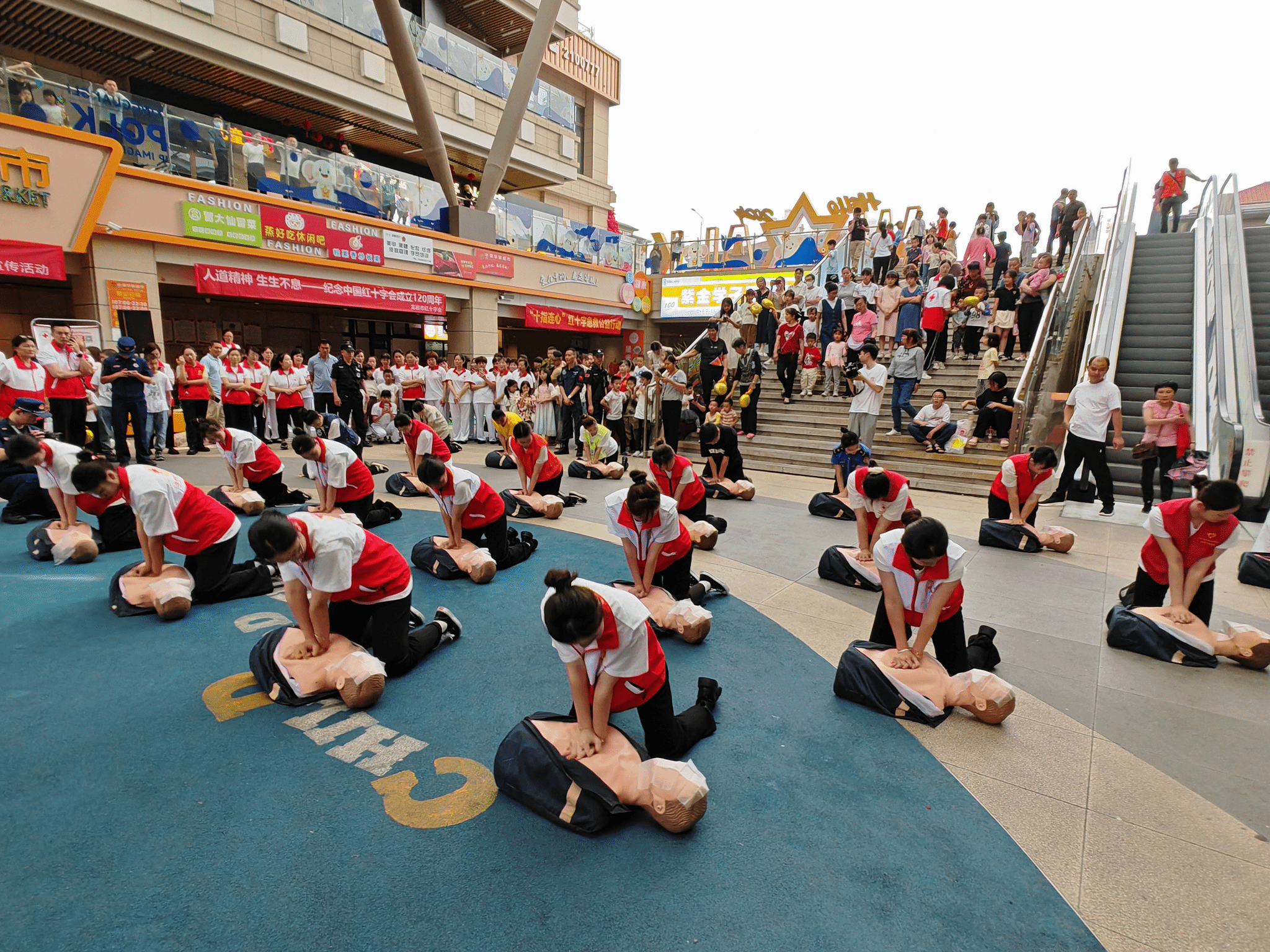 在活动现场,志愿者们通过设立宣传展板、发放宣传资料、现场演示等方式,向市民普及红十字运动基本知识、红十字法律法规以及应急救护知识。同时,志愿者们还通过快闪的形式,为市民带来了一场精彩纷呈的应急救护技能展示。MG冰球22名学生模拟不同行业从业人员,身着不同行业服装,整齐划一地进行了心肺复苏集体演示,将活动推向高潮,赢得了现场观众的阵阵掌声。