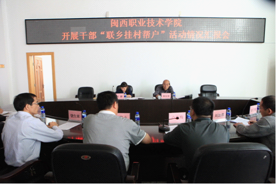 11月1日上午,我院开展干部“联乡挂村帮户”活动情况汇报会在行政楼二楼会议室举行。市委教育工委宣传部部长郑长贺,市教育局高等、职业与成人教育科干部叶婷,学院副院长刘路永、卢兆梅和“联乡挂村帮户”活动领导小组办公室成员等出席。会议由刘路永主持。
