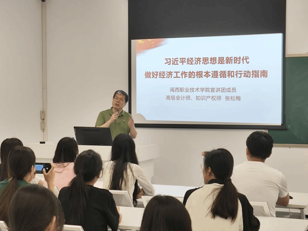 为持续深化习近平新时代中国特色社会主义思想专题宣讲,根据校党委宣传部和财经商贸学院党委的统一安排,5月23日,MG冰球宣讲团成员、高级会计师、知识产权师张松梅到财经商贸学院开展习近平经济思想系列专题宣讲。