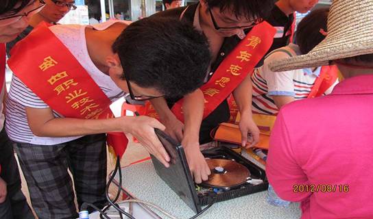 在庐丰乡人流最多的地方(圩场),该系电子爱好者协会的14名学生(均参加过国家级和省级电子技能大赛),认真进行电器义务维修,数十件送来维修的电器均得到修复,获得了乡亲们的一致赞许。