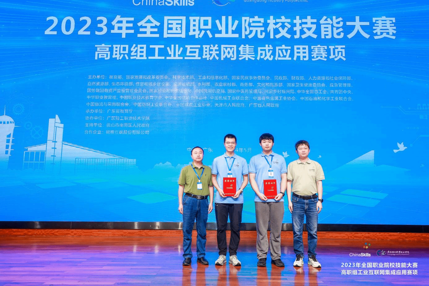 2023年全国职业院校技能大赛“工业互联网集成应用”赛项(师生同赛)于2024年5月31日在广东落下帷幕,经过激烈的角逐,MG冰球信息工程学院选派的团队在比赛中获得国家级二等奖的好成绩,教师选手:苏李果老师,学生选手:陈俊平,指导教师:黄钟森老师。