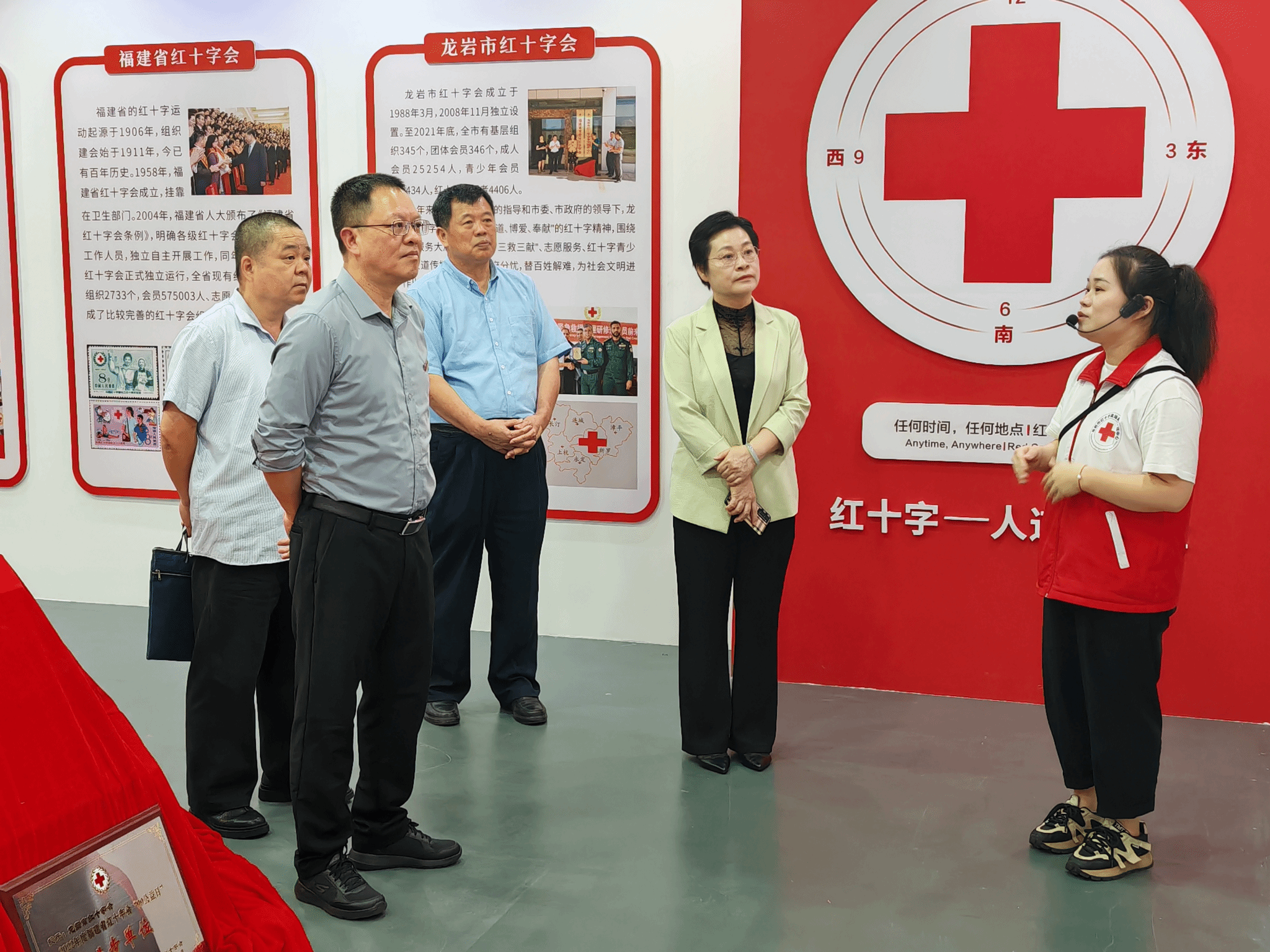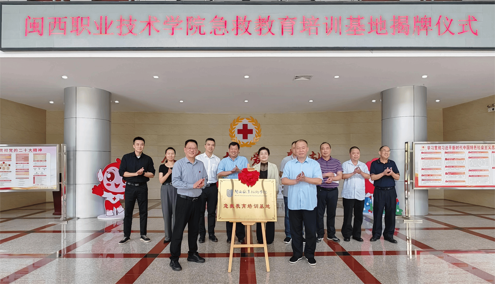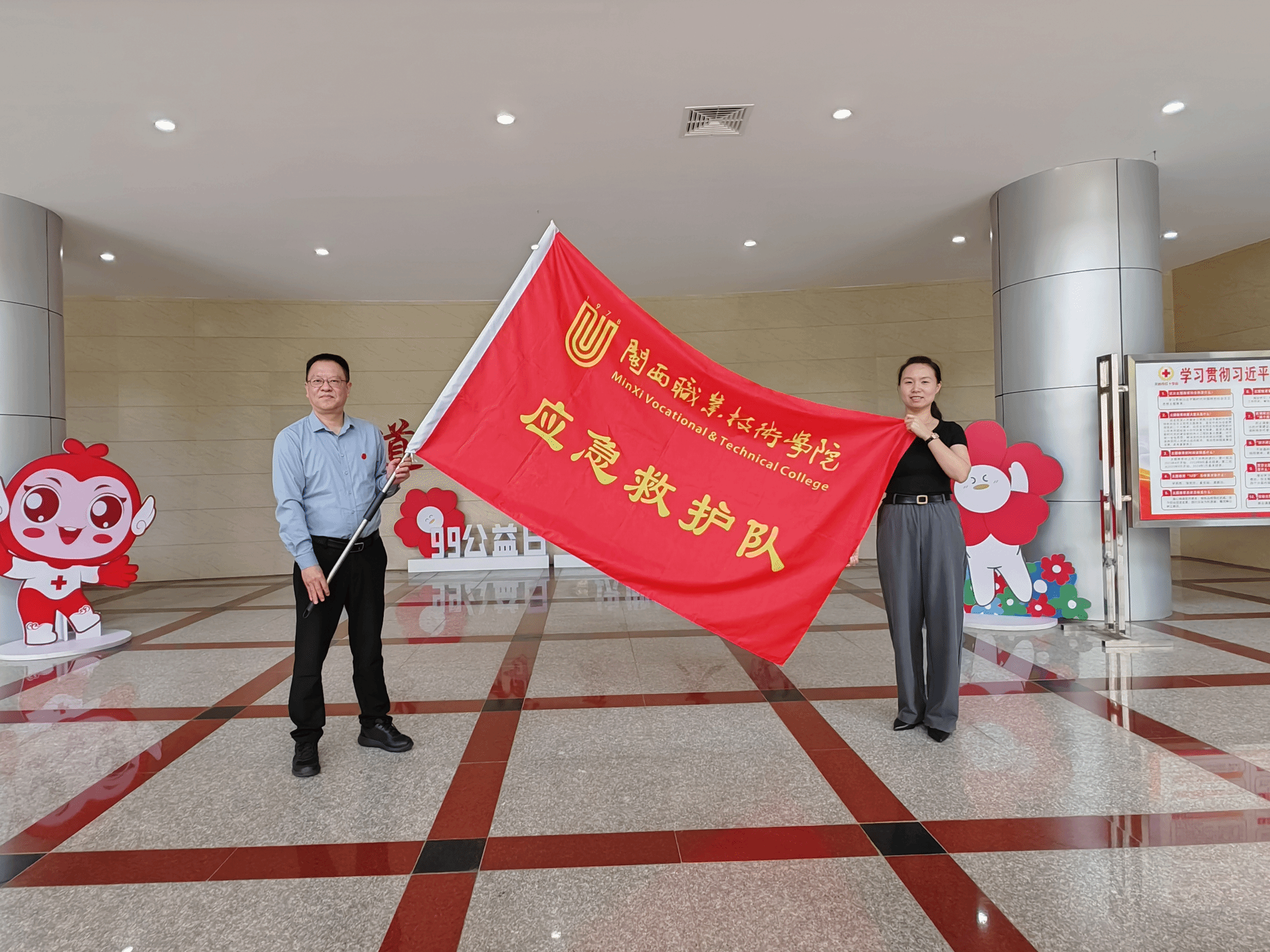 在龙岩市红十字会一楼大厅,梁俊平校长与邹方清书记共同为急救教育培训基地揭牌。梁俊平校长向校团委书记陈愉授予了“MG冰球突破官网应急救护队”的旗帜。