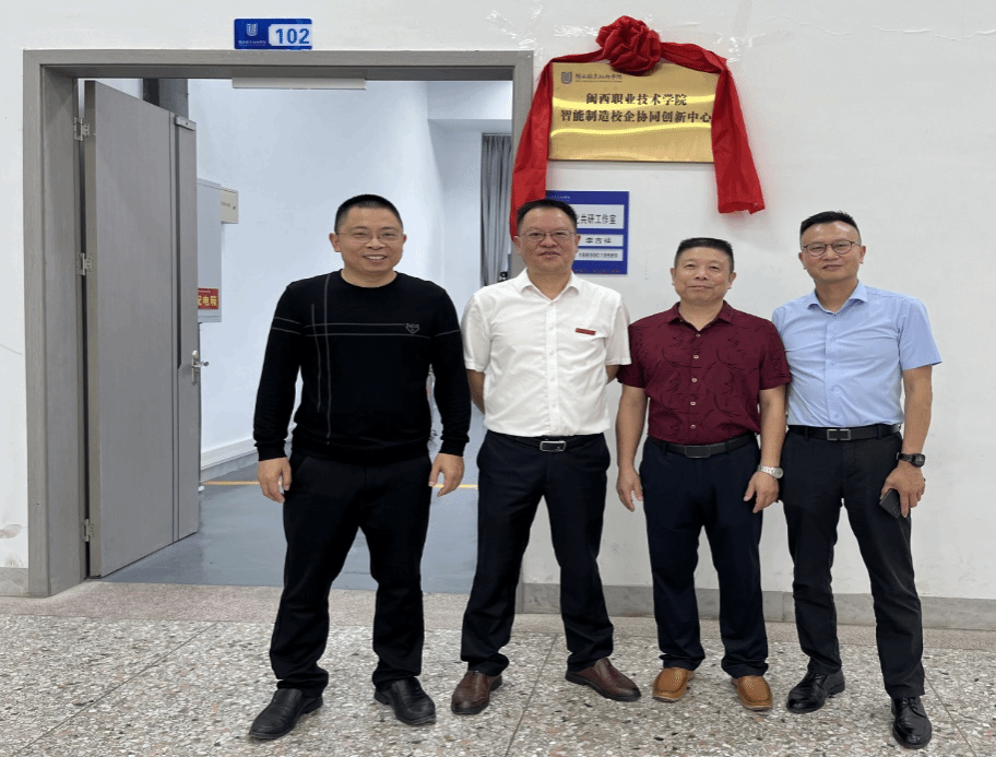 为深入践行创新驱动发展战略,助推区域产业升级及数字化转型,深化产学研创深度融合,6月12日,MG冰球突破官网“智能制造校企协同创新中心”揭牌仪式在校内举行,MG冰球梁俊平校长、三阳机械公司卢玉芬总经理、汉嘉电气公司杨志材总经理、皓佑物联科技公司刘锦远总经理、智能制造学院班子及相关教师等参加揭牌仪式,由梁俊平校长和卢玉芬总经理共同揭牌。