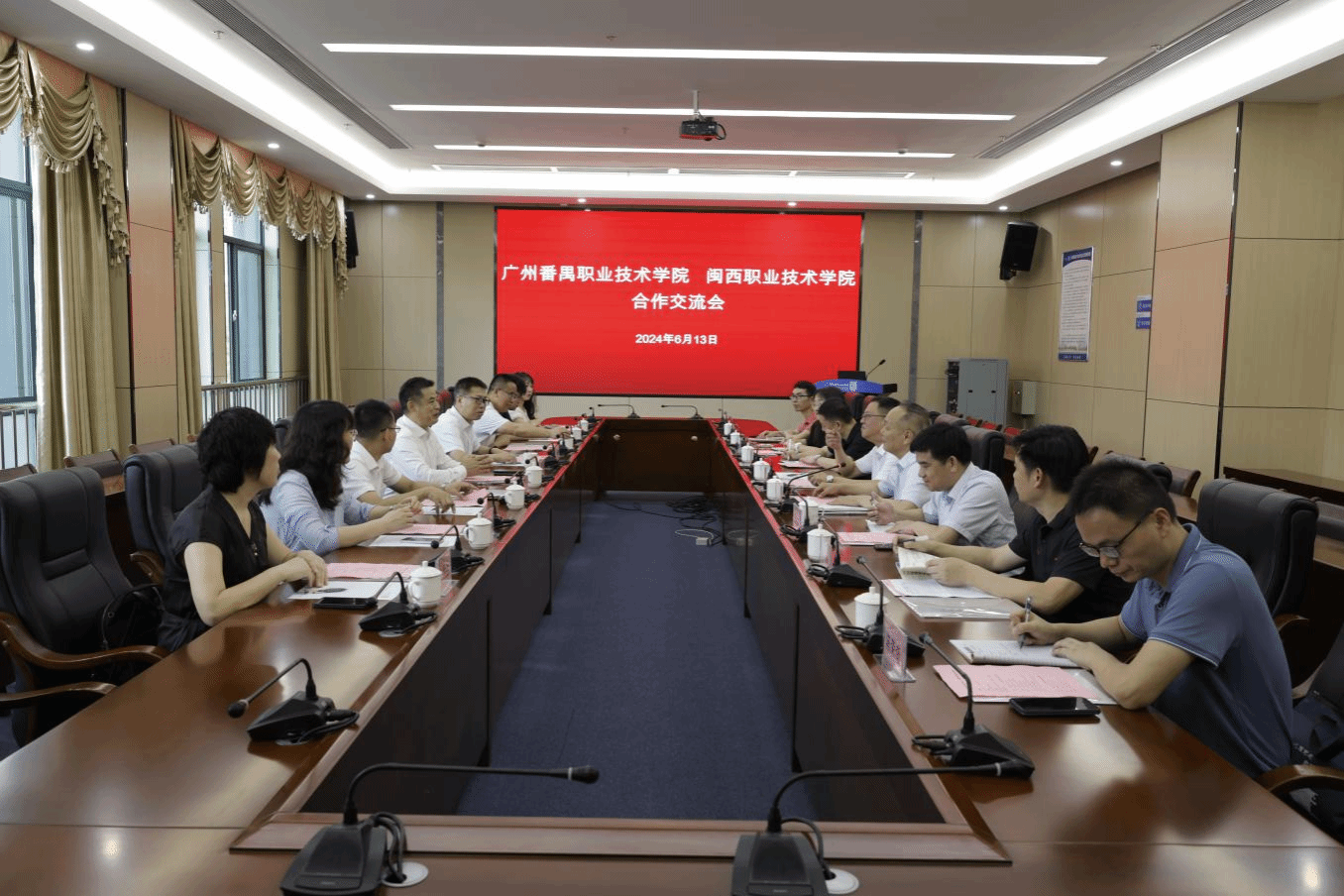 仲夏日中时,闽西万象新。6月13日上午,广州番禺职业技术学院与MG冰球突破官网合作交流会在MG冰球岩声楼二楼会议室召开。广州番禺职业技术学院党委委员、副校长李绍中,党委委员、组织部部长郑亮,党委委员、宣传部部长曾海宾及相关学院、部门领导,MG冰球党委副书记、校长梁俊平,党委委员、副校长张源峰及对口学院、部门领导参加交流会。会议由MG冰球党委委员、副校长张源峰主持。