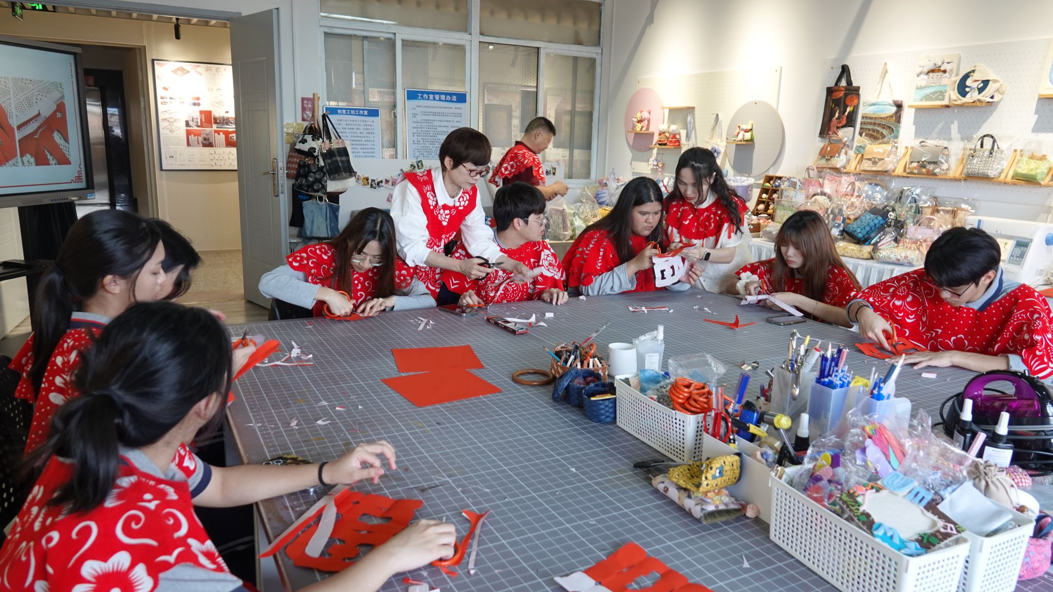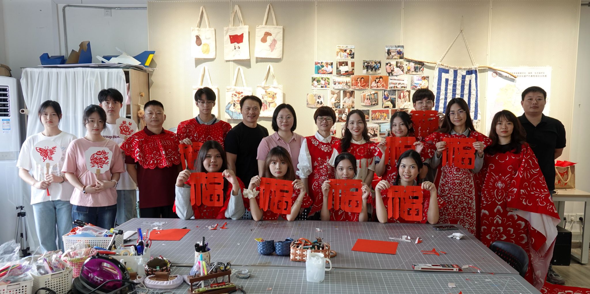 留学生们首先参观了MG冰球“非遗传承人”工作室。工作室负责人吕春玲老师为留学生们讲述了龙岩剪纸的历史及发展,学校客座教授、龙岩剪纸非遗传承人林红缨老师现场展示了剪纸服装。大家被一件件精妙绝伦的剪纸服装深深吸引,每一件作品都是匠心独运,既展现了传统技艺的精髓,又融入了现代创新的元素。留学生们还亲自试穿,争相拍照留影。这种跨界的艺术表现形式让他们兴奋不已,纷纷表示这是一次前所未有的体验。留学生们还在林红缨老师的指导下,亲手完成了“福”字剪纸作品。一刀一剪之间,不仅传递了对美好生活的祈愿,更剪出了中外友谊的桥梁,加深了对“福”文化的理解与感悟。留学生们脸上洋溢的笑容,是对这次文化交融体验最真挚的反馈,他们纷纷表示这是一次难忘且愉快的学习经历。