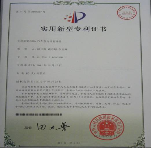 该专利经过实际运用证明,发电机在运行过程中散热明显加快,发电机运行的温度明显降低,这对延长发电机的寿命,提高发电机的效率,改善发电机的性能等方面均取得明显作用。另外,该前端盖开设了通风孔,不仅达到了散热的目的,而且减少了制作外壳的用料,降低了成本。
