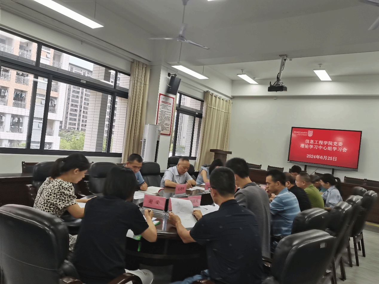6月25日上午,校领导张源峰副校长巡听旁听信息工程学院党委理论学习中心组学习会,学校巡听旁听工作小组三位成员一同到会指导。会议由信息工程学院党委书记刘加养主持,学院党委委员、班子成员、党支部书记参会。