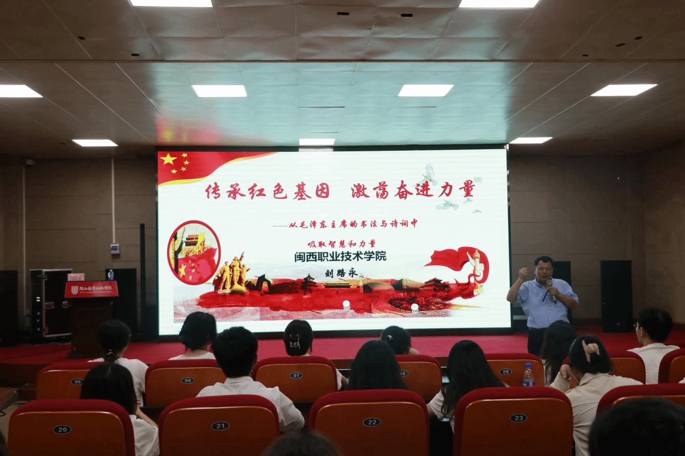 刘路永副校长以《传承红色基因 激荡奋进力量----从毛泽东主席的书法与诗词中吸取智慧和力量》为题,从“时代-责任”“道德-规范”“认知-行动”“人生-追求”等角度展开剖析,带领学员们感受毛主席书法和诗词展现出来的人格魅力和哲学道理。他强调,学员们应该从毛主席书法和诗词中学习人生智慧,珍惜每一寸光阴,不断发奋学习,发展自己,锤炼自己,完善自己。