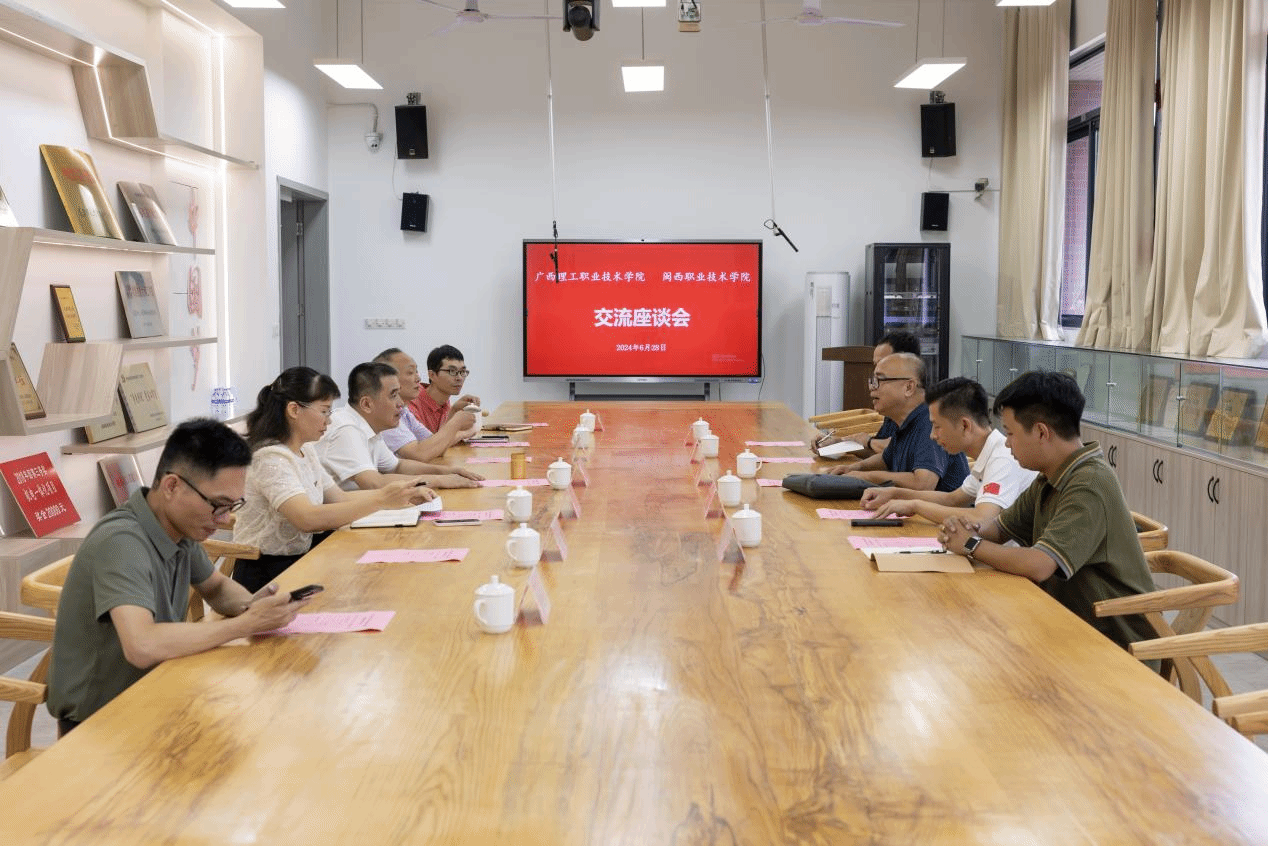 6月28日上午,广西理工职业技术学院书记农荣、副校长韩祖丽一行5人到MG冰球调研交流。MG冰球党委书记卢伟耀、副校长张源峰、教务处、科研处、财经商贸学院、智能制造学院等相关负责人陪同参观访问。