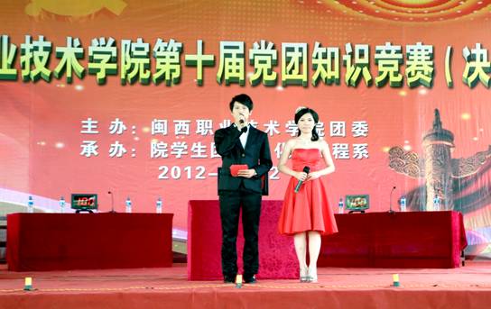 5月22日下午,我院首届科技文化艺术节系列活动之第十届党团知识竞赛(决赛)在槟龙球场举行,党委书记马春延,副院长吴新业,各系党总支、院系团委负责人及团员学生共500多人参加此次活动,吴新业发表致辞。