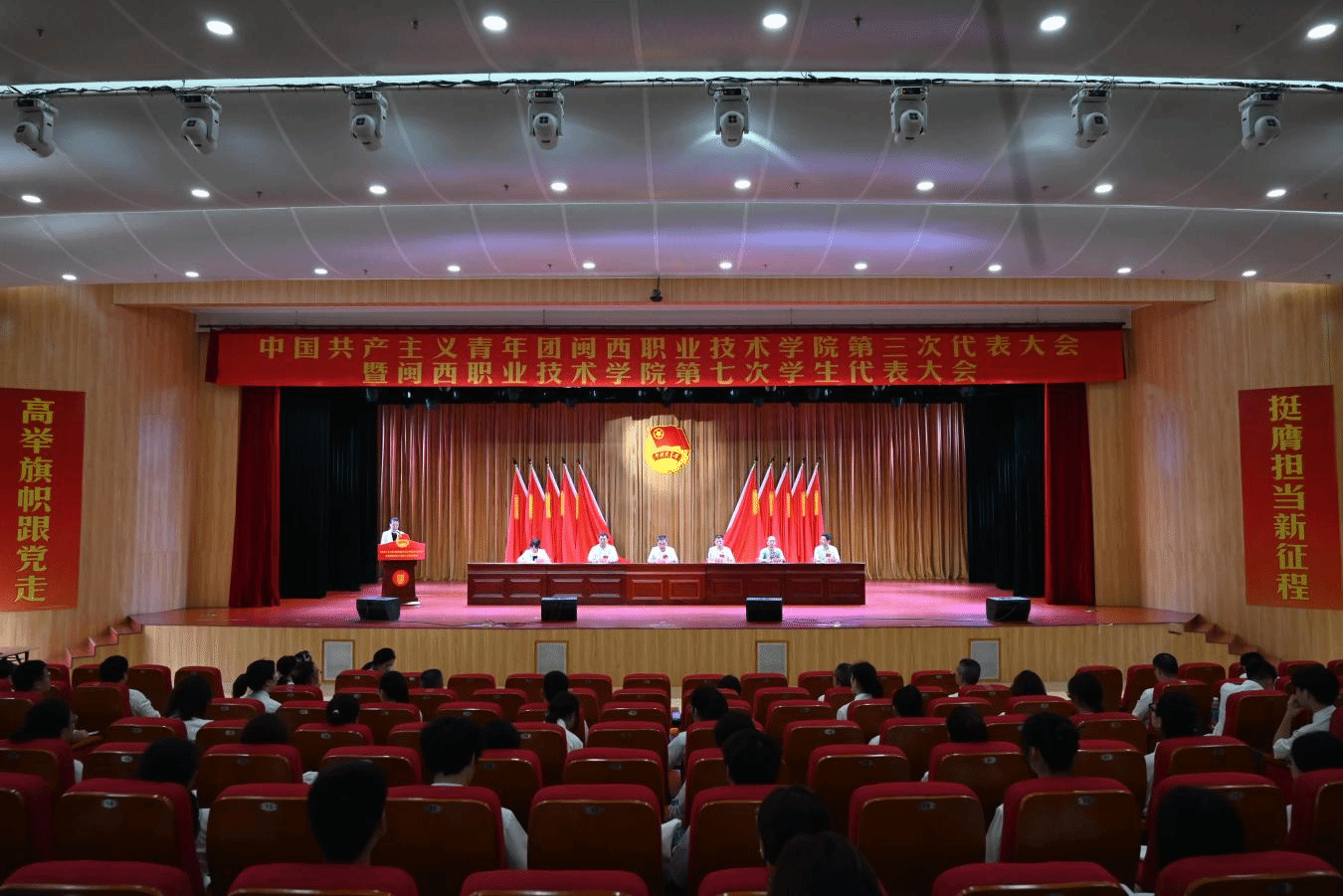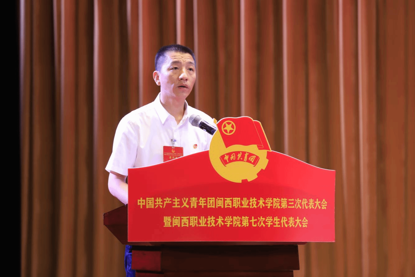 2024年6月28日,共青团MG冰球突破官网第三次代表大会暨MG冰球突破官网第七次学生代表大会在学校大匠堂胜利召开。共青团龙岩市委副书记郭朝龙、龙岩学院团委副书记郭晓云、厦门城市职业技术学院团委书记王克强,校党委书记卢伟耀、副校长刘路永、纪委书记温献荣,校各职能部门、各二级学院主要负责人出席会议。大会代表、嘉宾等260余人参加了会议。福建船政交通职业学院、广州番禺职业技术学院等兄弟院校团委向大会发来贺信。