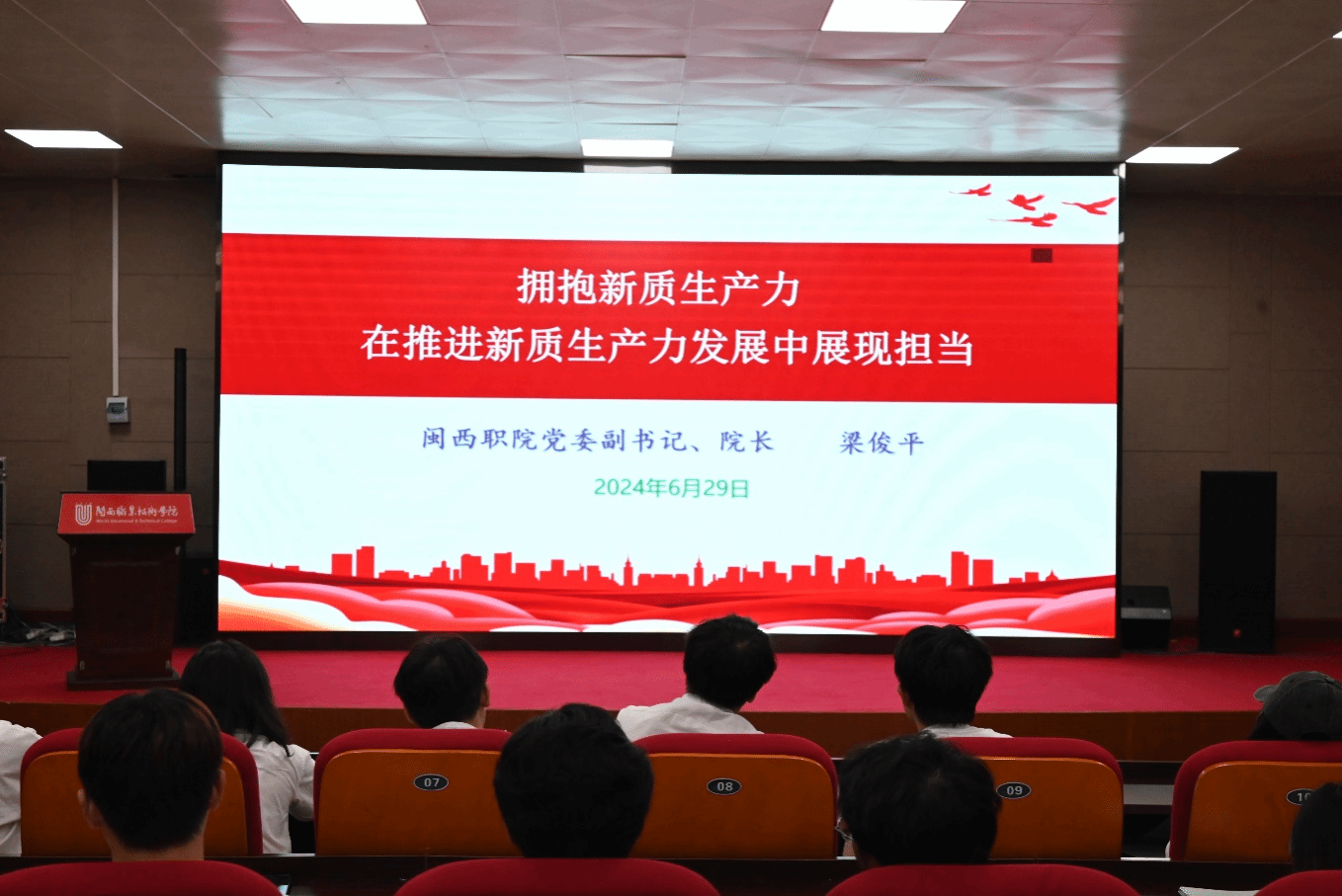 梁俊平校长的课深入浅出,发人深省,既增长了闽大学子对于发展新质生产力的理解,又为闽大学子如何找到优质就业指明了方向,充实了打造“予生最好学校”的内涵。